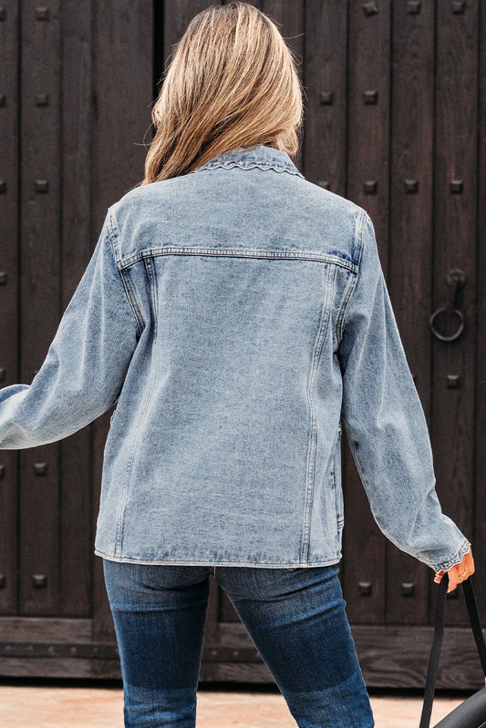 Brooklyn Scallop Trim Button Up Denim Jacket