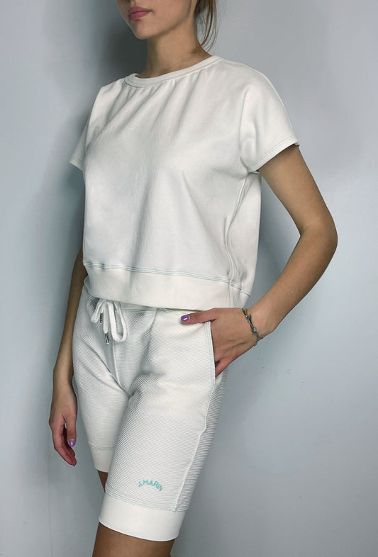 The Knicker Short - Natural/Marine Green Stitch
