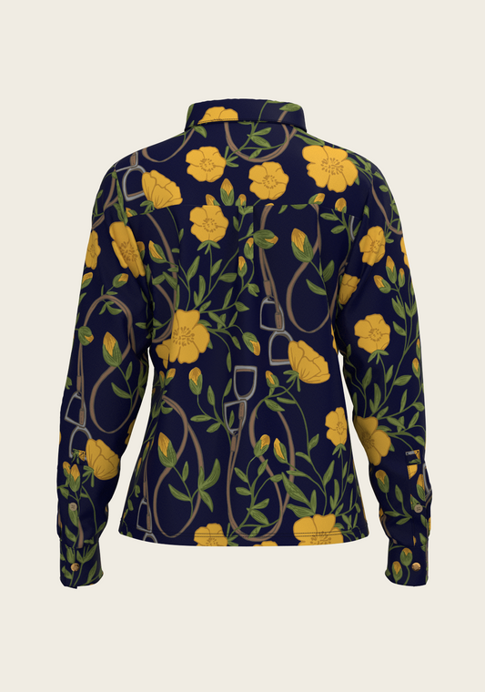 Navy Stirrups Short Pleated Long Sleeve Show Shirt