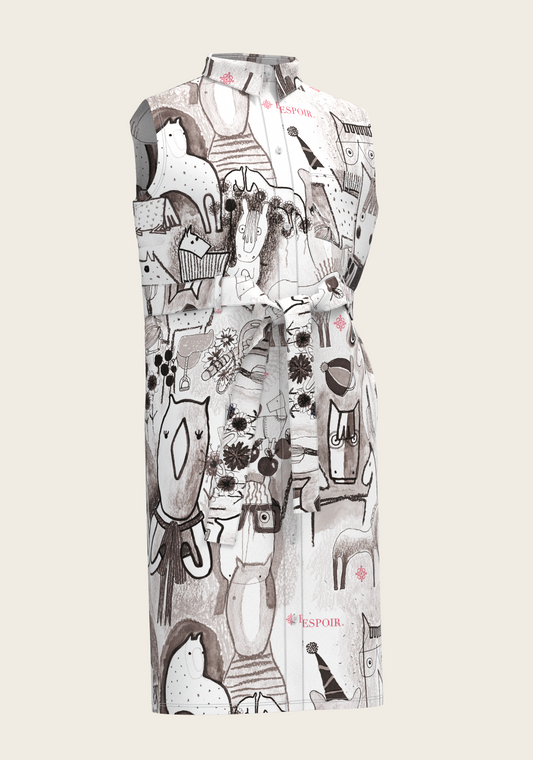 The Horse Fair Monochrome Sleeveless Shirt Dress