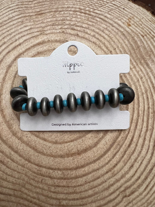 Western Faux Saucer Perlen Stretch Armband mit falschem Türkis - 6 1/2 Zoll