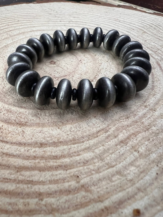 Western Faux Saucer Perlen Stretcharmband mit schwarzem Stein - 6 1/2 Zoll