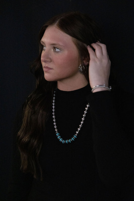 Western falsche geprägte Sterlingsilber-Perlen, Untertassen und Türkis - 24 inch + 3