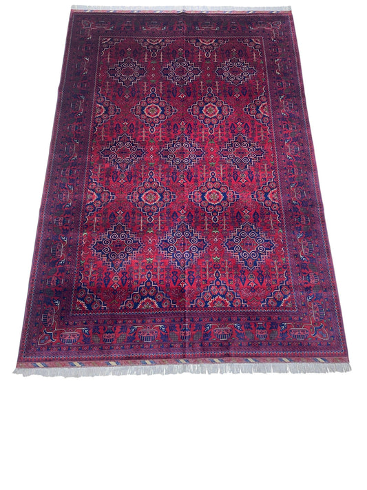 Hand-Knotted Afghani Kazak Wool Rug – 5’0″ x 6’10″