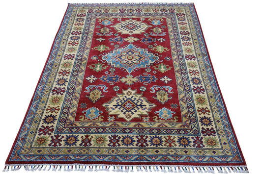 Fine Hand Knotted Afghani Super Kazak Rug 5 x 7