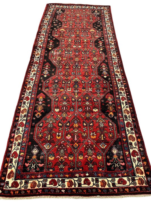 Vintage Persian Hosseinabad Runner Rug - 4’2” x 10’5” - Handwoven Wool, Circa 1950s