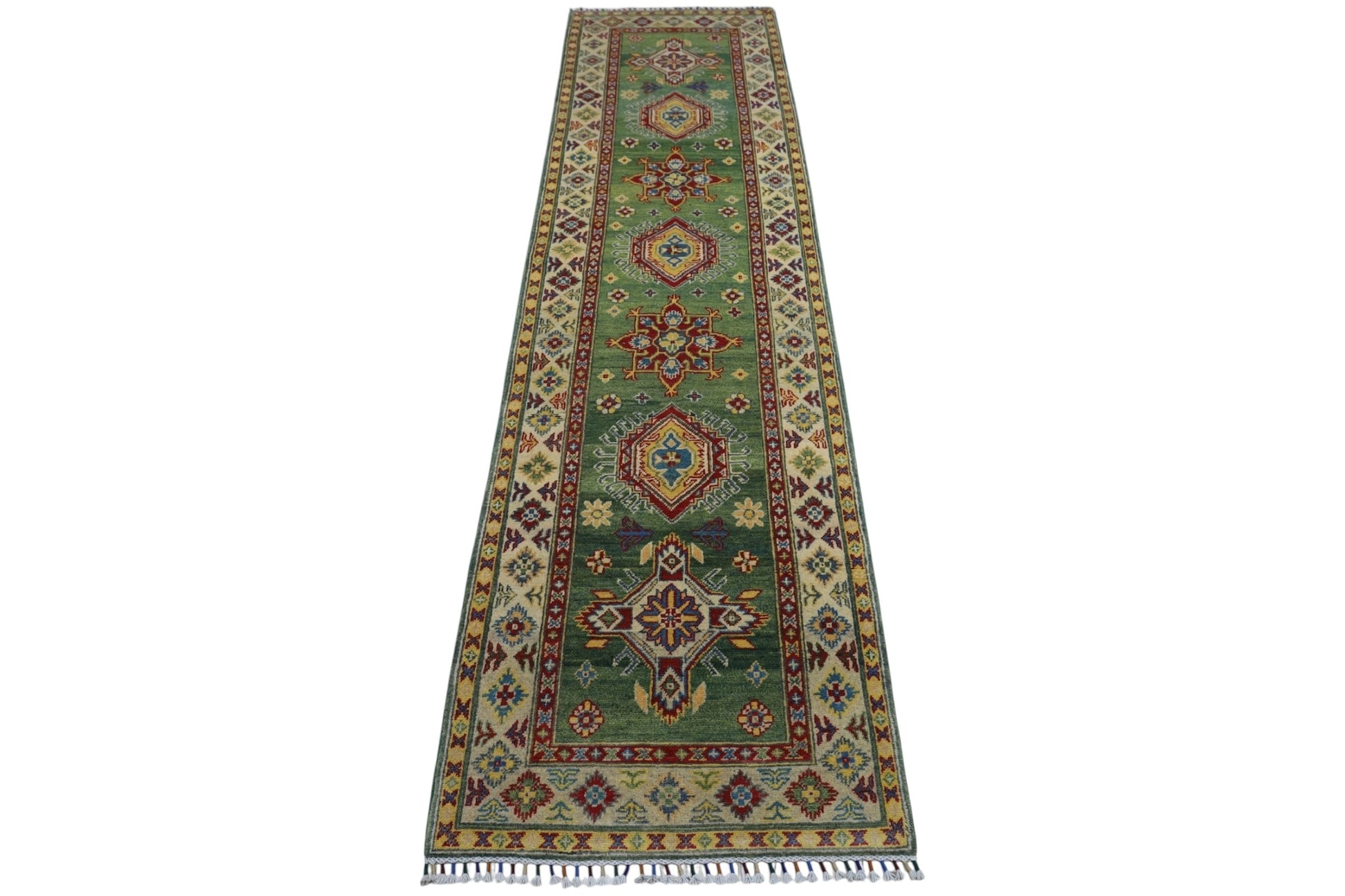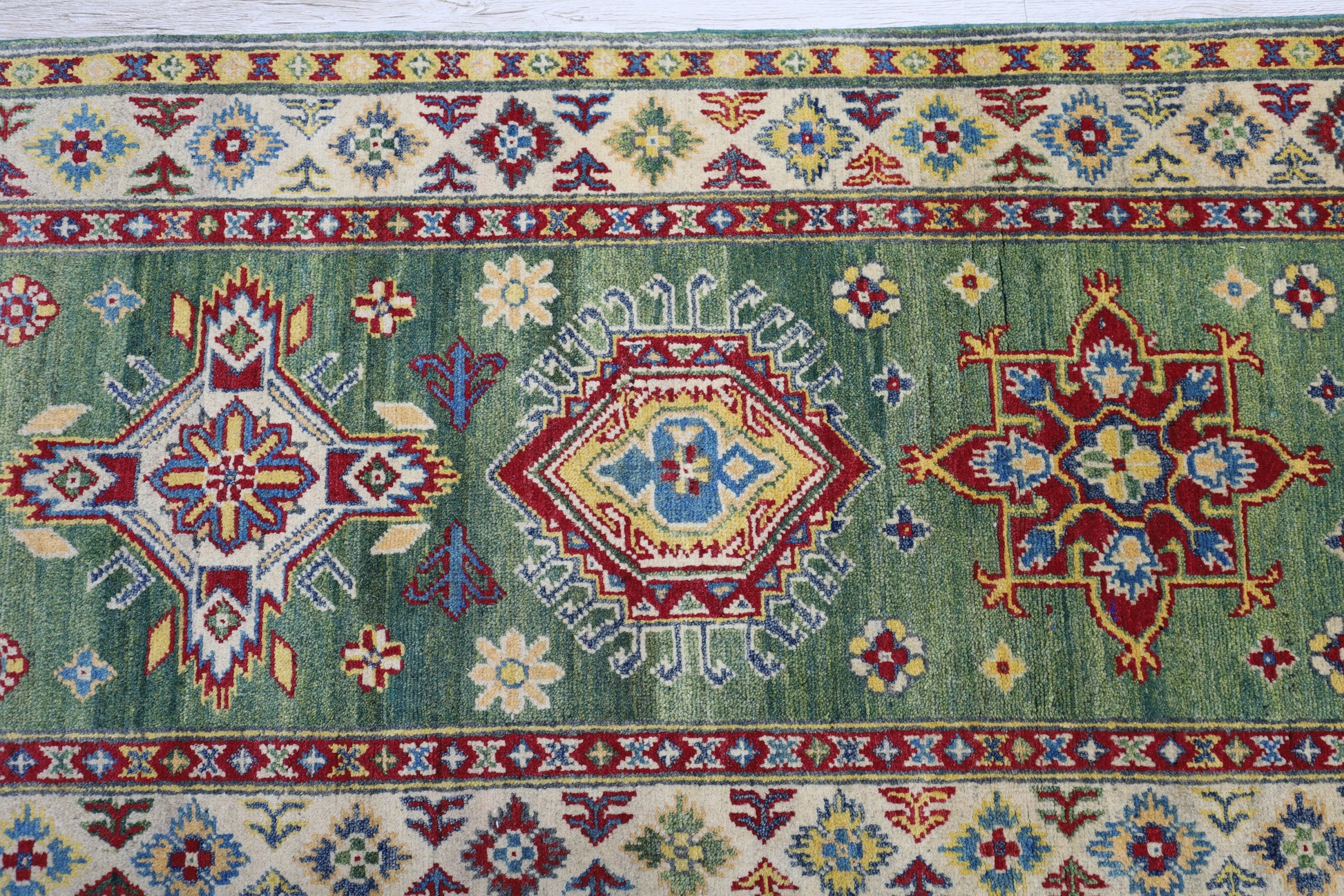 Hand-Knotted Afghani Kazak Wool Rug – 2’7″ x 9’8″
