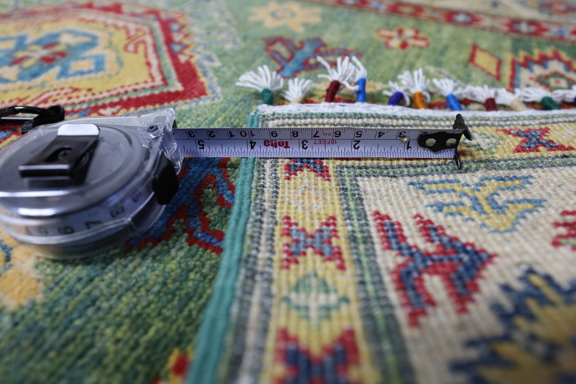 This hand-knotted kazak rug features rich color tones and traditional Afghan weaving. Made with high-quality wool on a cotton foundation, it offers both beauty and durability. Ideal for adding character and texture to entryways, living rooms, or studies.