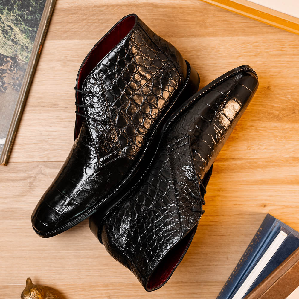 The PIETRO, rugged genuine alligator and leather lace-up boots. With their robust design and lace-up closure, they're ready to take on any challenge.