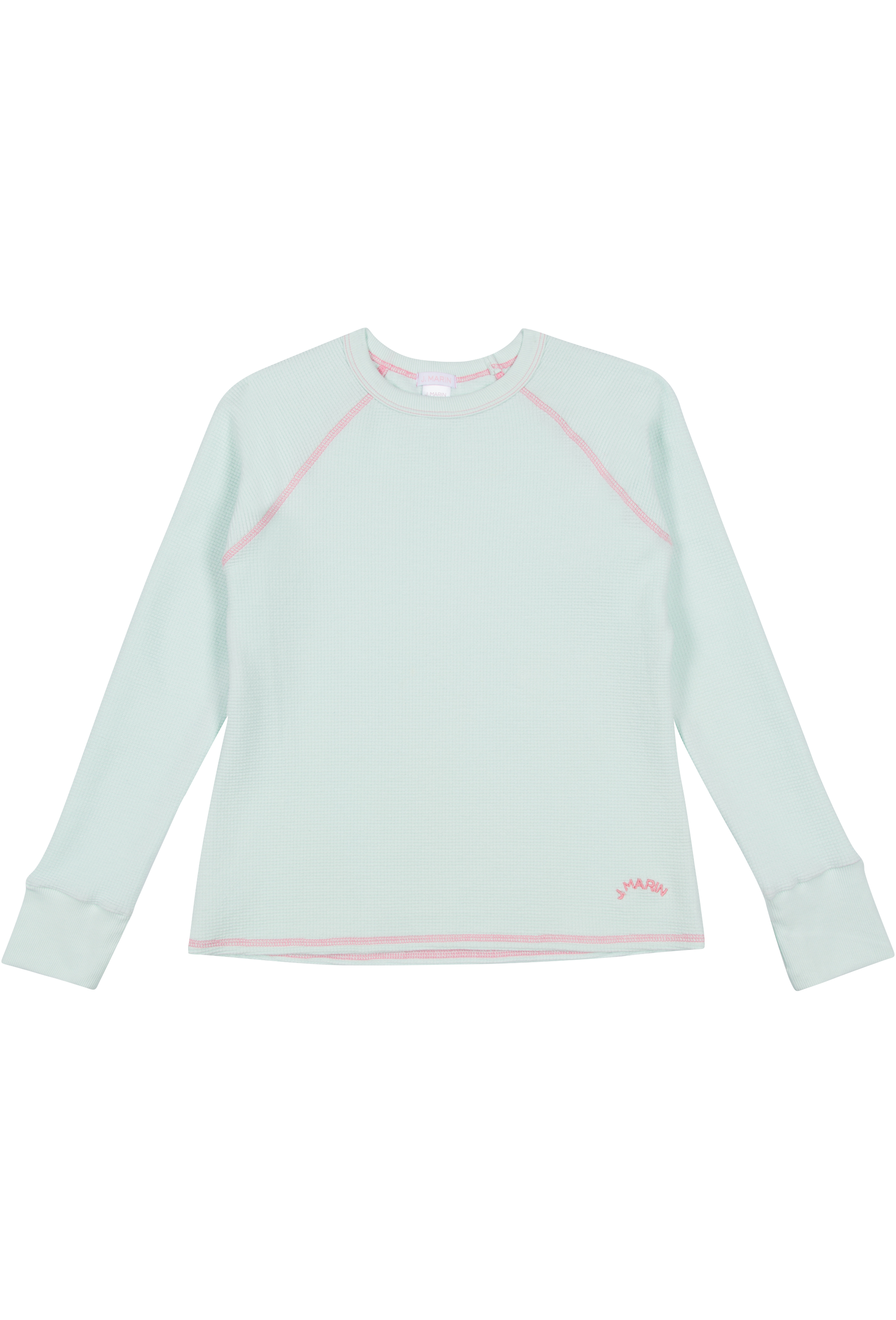 Ein Gruß an gemütliche alpine Morgen und gut geliebte Schichten, unser Chalet Thermal Top ist mühelos entspannt mit Vintage-Charme. Abgeschlossen mit klassischem Rippstrick am Ausschnitt und an den Bündchen sowie süßen Daumenlöchern, um die Hände warm und eingekuschelt zu halten.