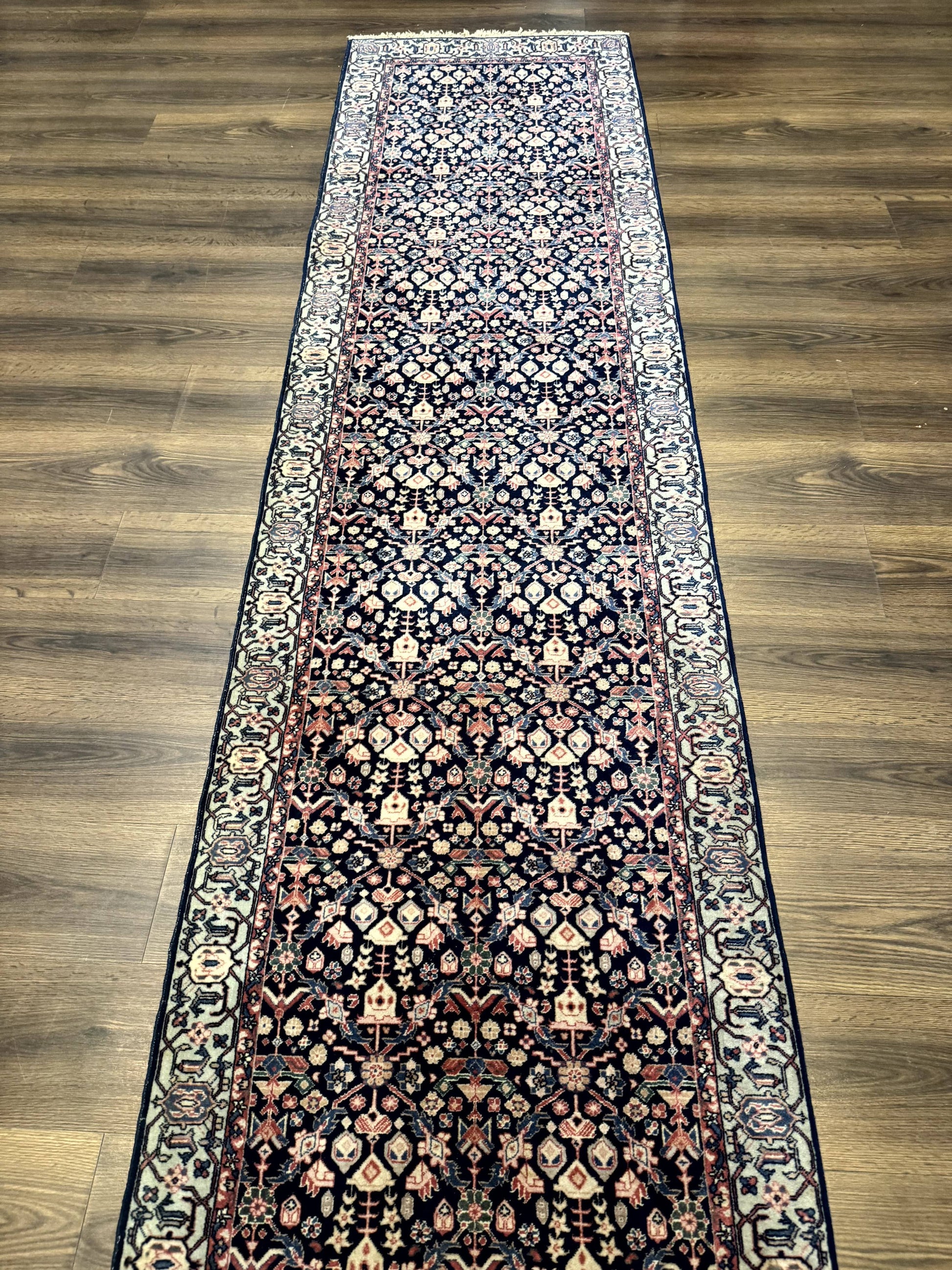 Indo Persian Runner Rug 2.8 x 12, Navy Blue, Floral, Fine 270 KPSI