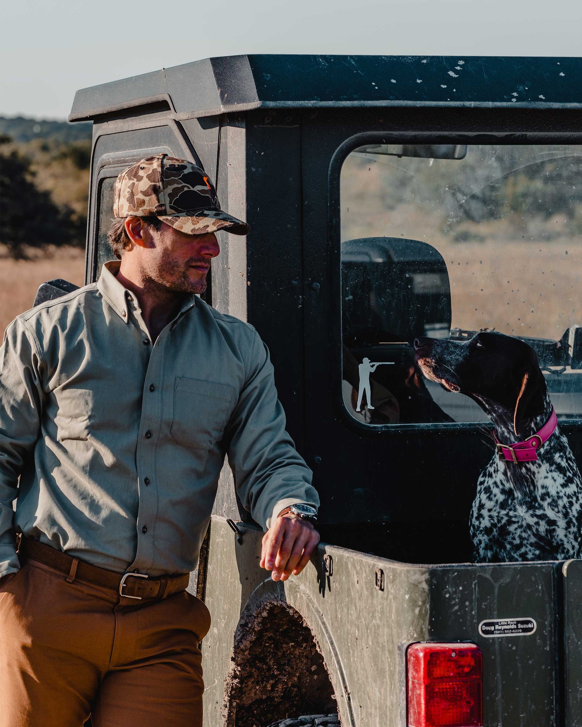 La chemise Scout en Weathered Moss est probablement notre chemise de terrain la plus polyvalente et discrète. C'est une silhouette épurée qui peut être mise en valeur avec un pantalon chino, portée de manière décontractée avec un jean en denim, ou assortie à notre pantalon de terrain. Une chose est certaine - la chemise Scout est conçue pour l'extérieur, et vous saurez qu'elle est sérieuse dès que vous l'enfilerez. Elle est coupée et cousue dans un tissu sergé en coton 7,2 oz prêt pour le terrain, testé pour sa durabilité, et dispose de notre ventilation Tech Vent® sous les bras pour vous aider à rester au frais lors de toute activité. Nous avons intégré un chiffon en microfibre à l'ourlet inférieur pour garder vos lunettes de soleil ou lunettes de tir propres.