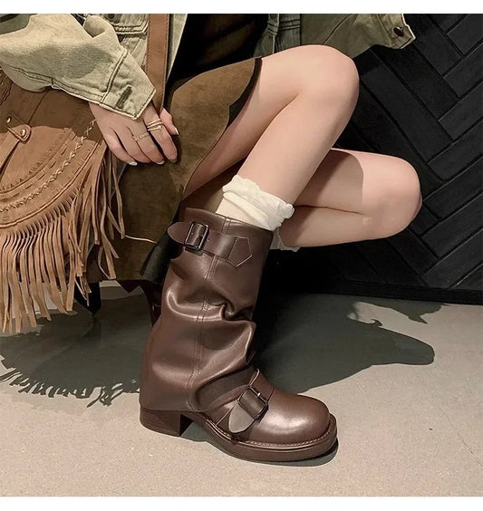 Stivali da motociclista slouchy | Design in eco-pelle con tacco a blocco comodo