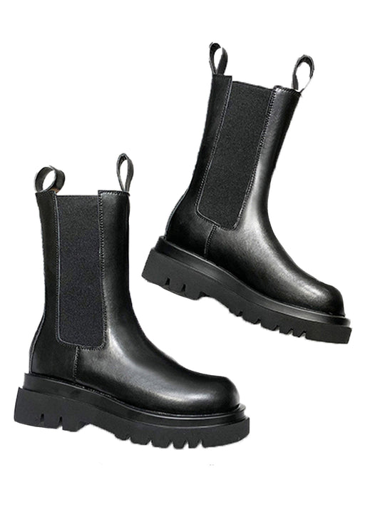 Chunky Black Boots | Comfortable Elastic Design with Soft Leather Upper