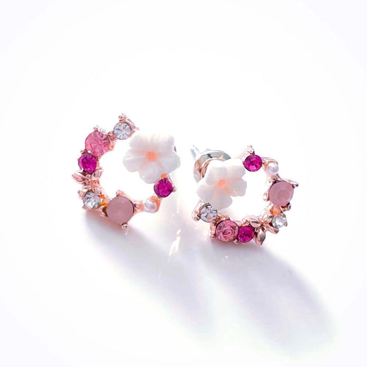 Orecchini a bottone con ghirlanda di fiori di cristallo