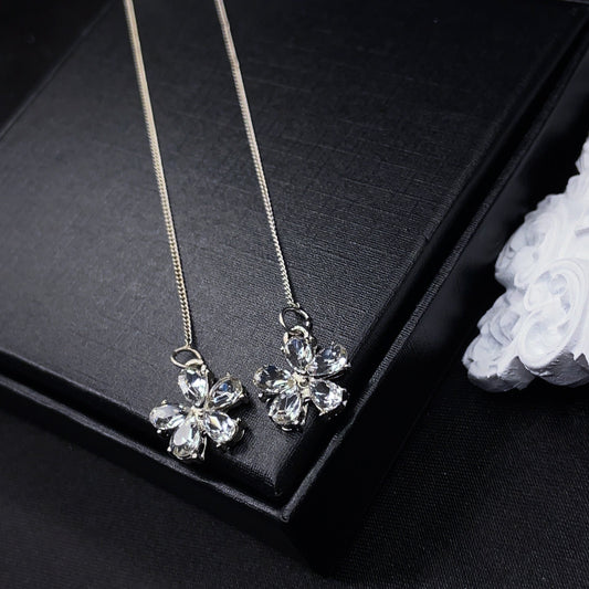 Orecchini a filo con fiore di cristallo e perni con perle