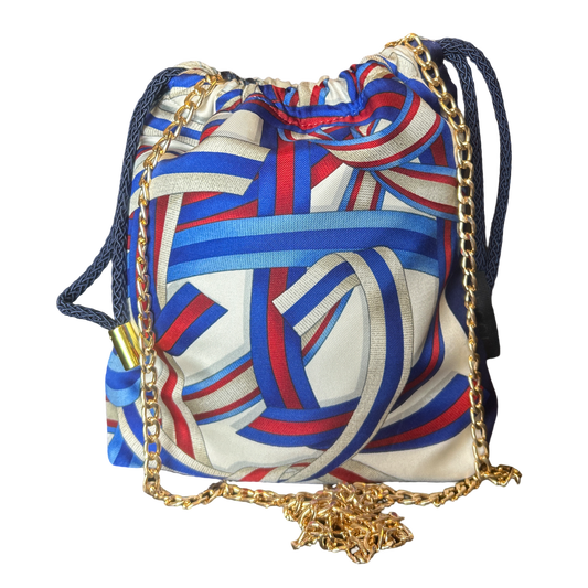 Ribbons Vintage Scarf Drawstring Crossbody Bag