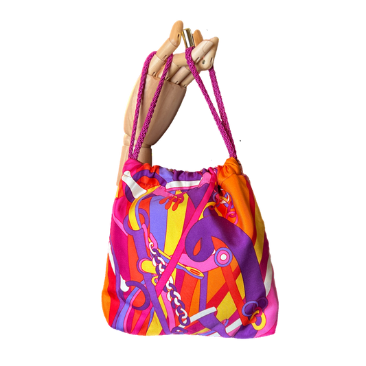 Pop Art Equestrian Vintage Scarf Drawstring Crossbody Bag