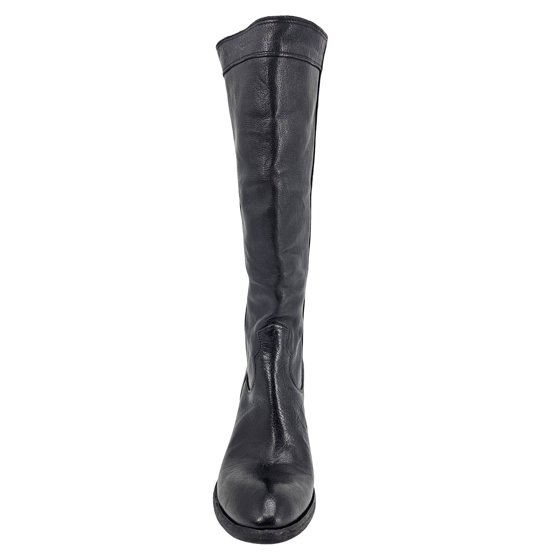 Black Leather Knee-High Pull-on Boot