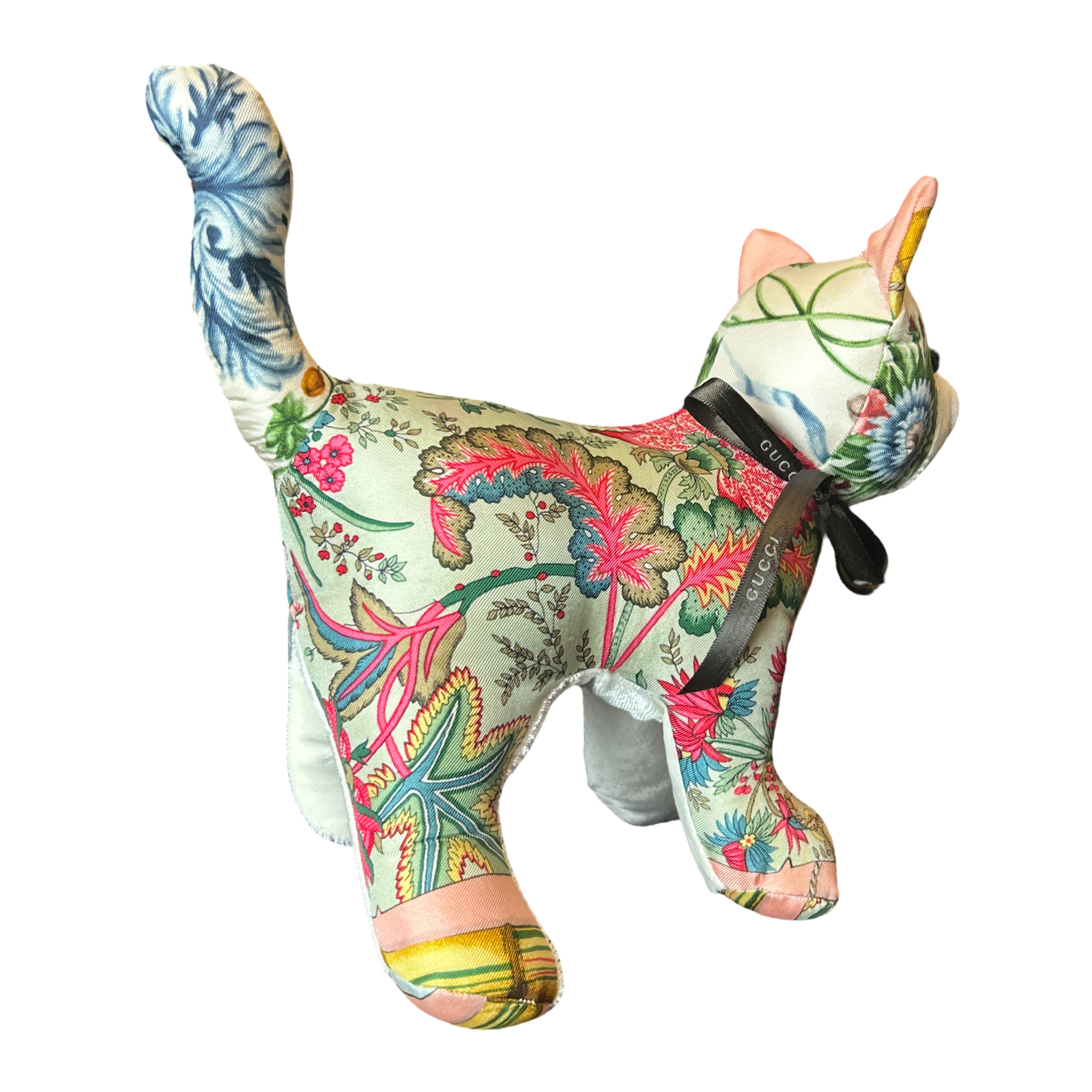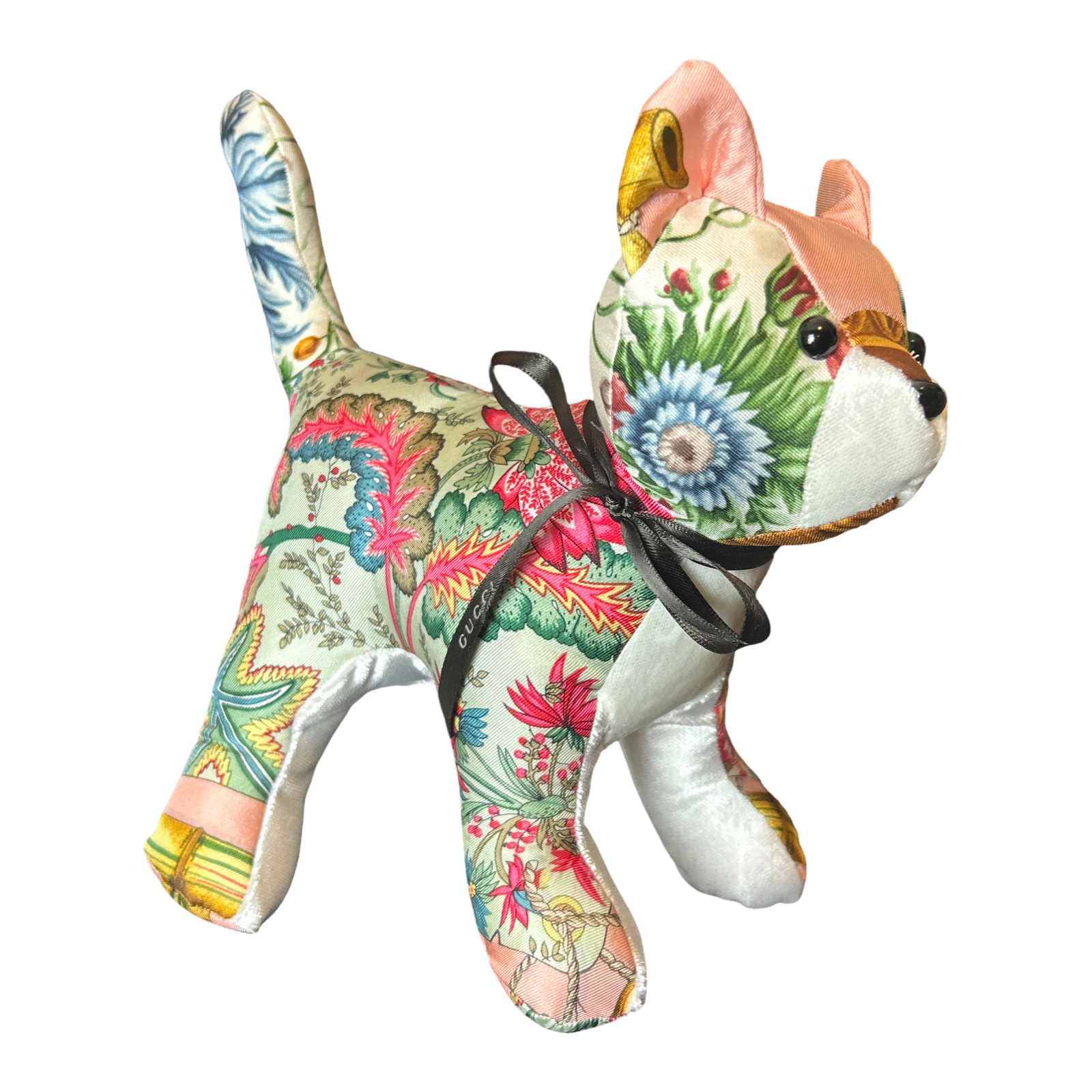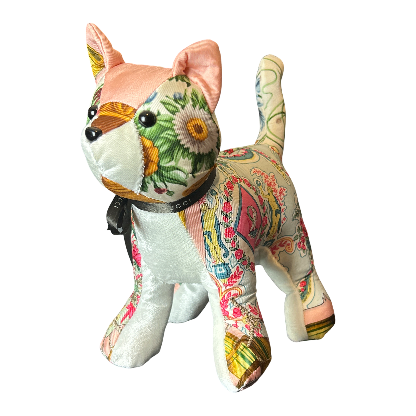 Vintage Gucci silk scarves and velvet cloth handmade into a one of a kind animal. Non-Allergenic polyfill stuffing. For decorative use only.