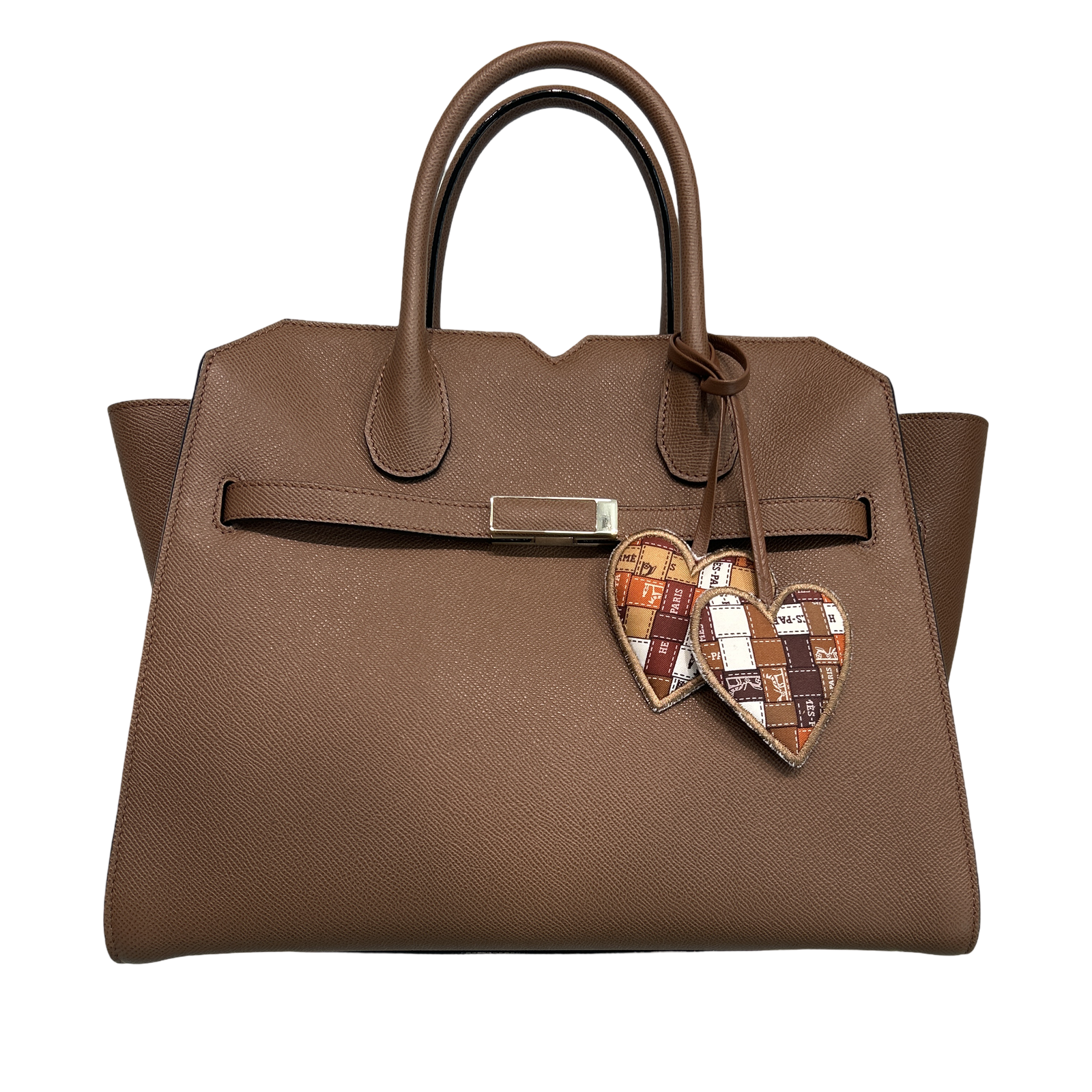 Reimagined from the world’s finest collection of vintage luxury scarves, our exclusive Double Heart Bag Charm is the must-have accessory of the season. Perfectly sized to give your cherished handbag a personalized pop of style.