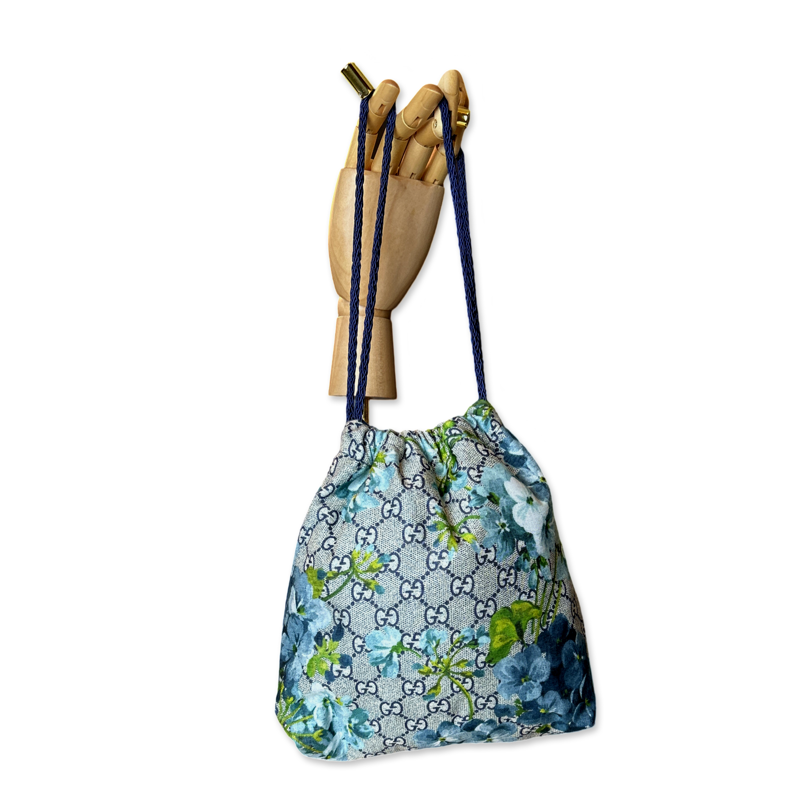 GG Logo Blooms Blue Vintage Scarf Drawstring Crossbody Bag