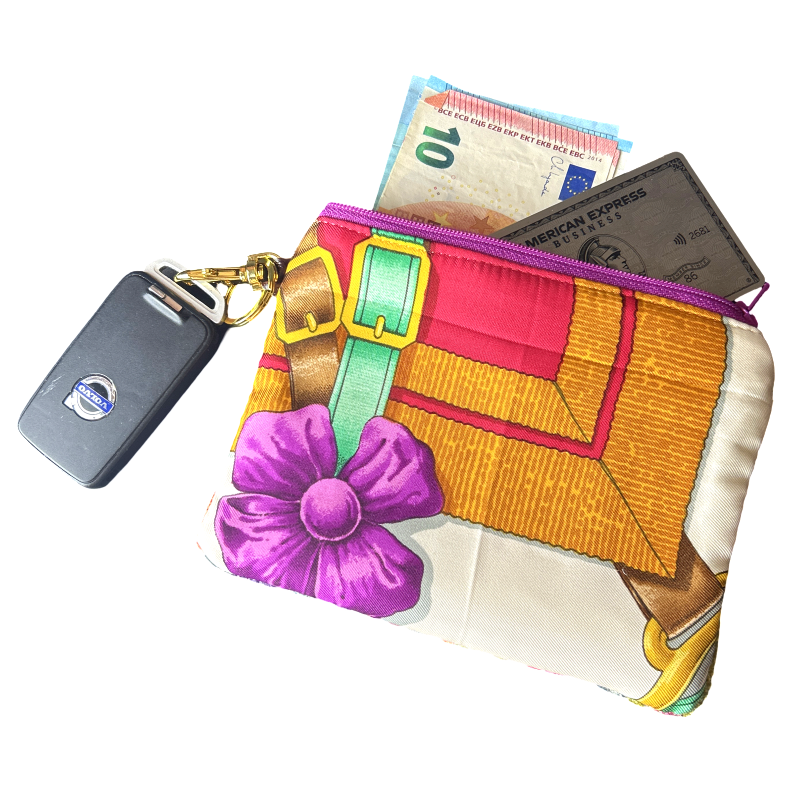Reimagined from the world’s finest collection of vintage Hermès scarves, our exclusive Coffee Run Keychain Bag is perfectly sized for when you only need your credit card, a few bills, and your lip gloss.