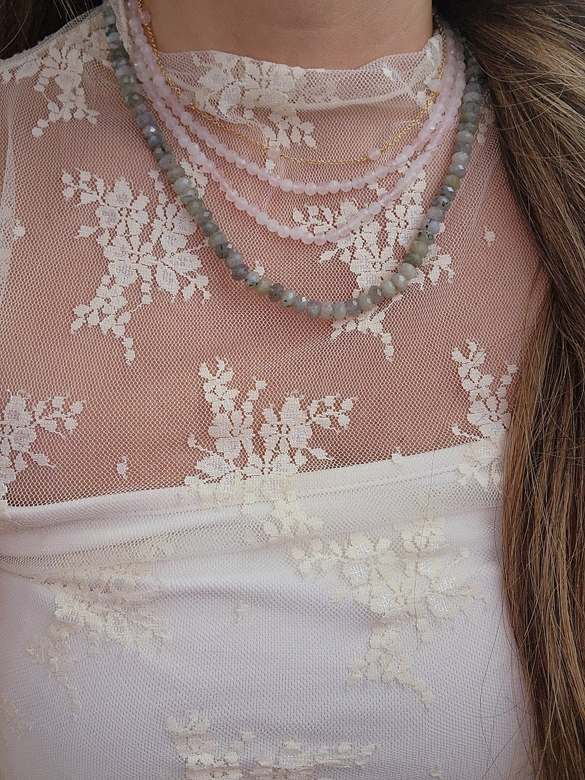 Make a bold statement with the LOA NCK necklace designed with 18K gold-filled, hypoallergenic & labradorite stones. Its striking 16" plus 2" chain is perfect for achieving a timeless and elegant look. Wear this unique accessory and be the envy of every room!