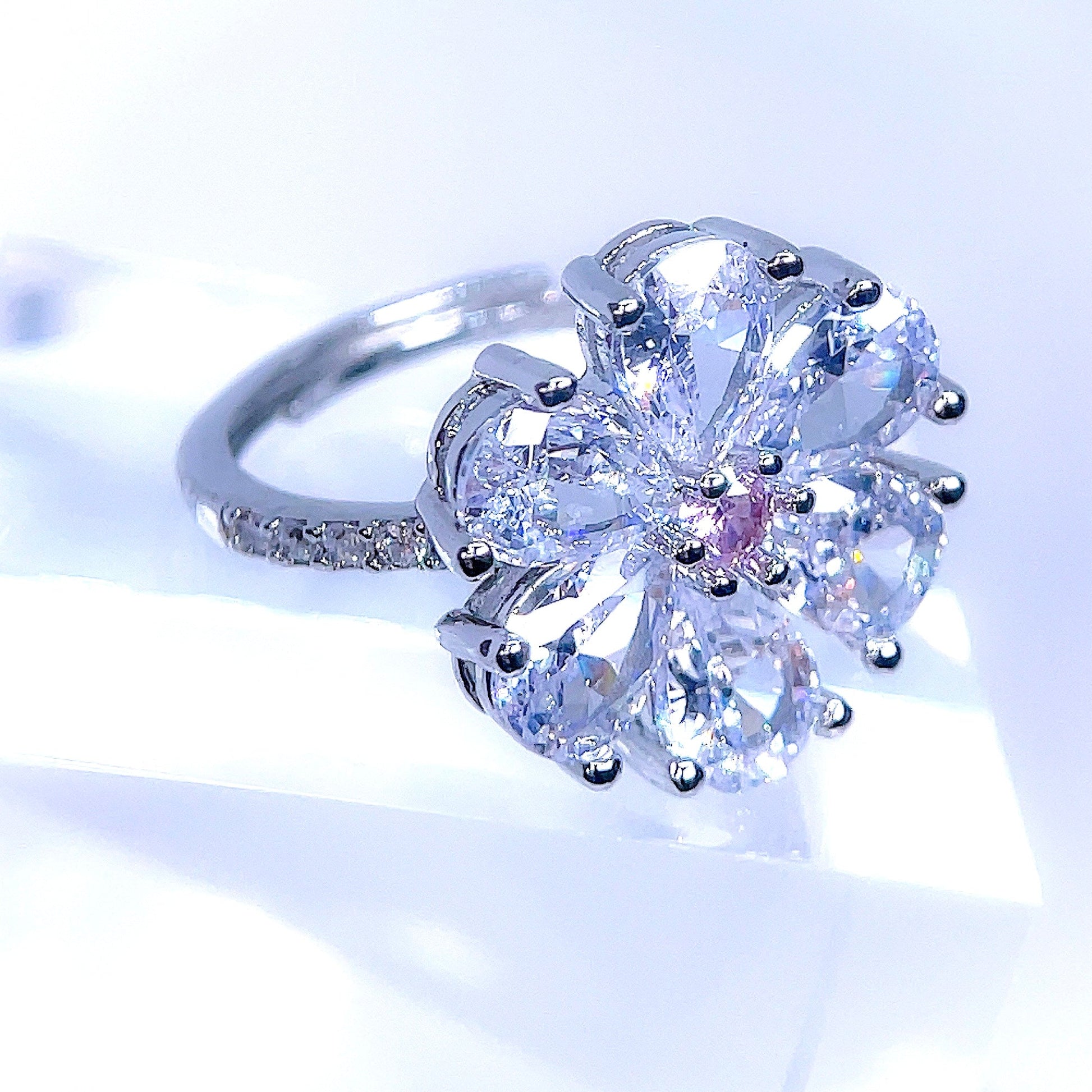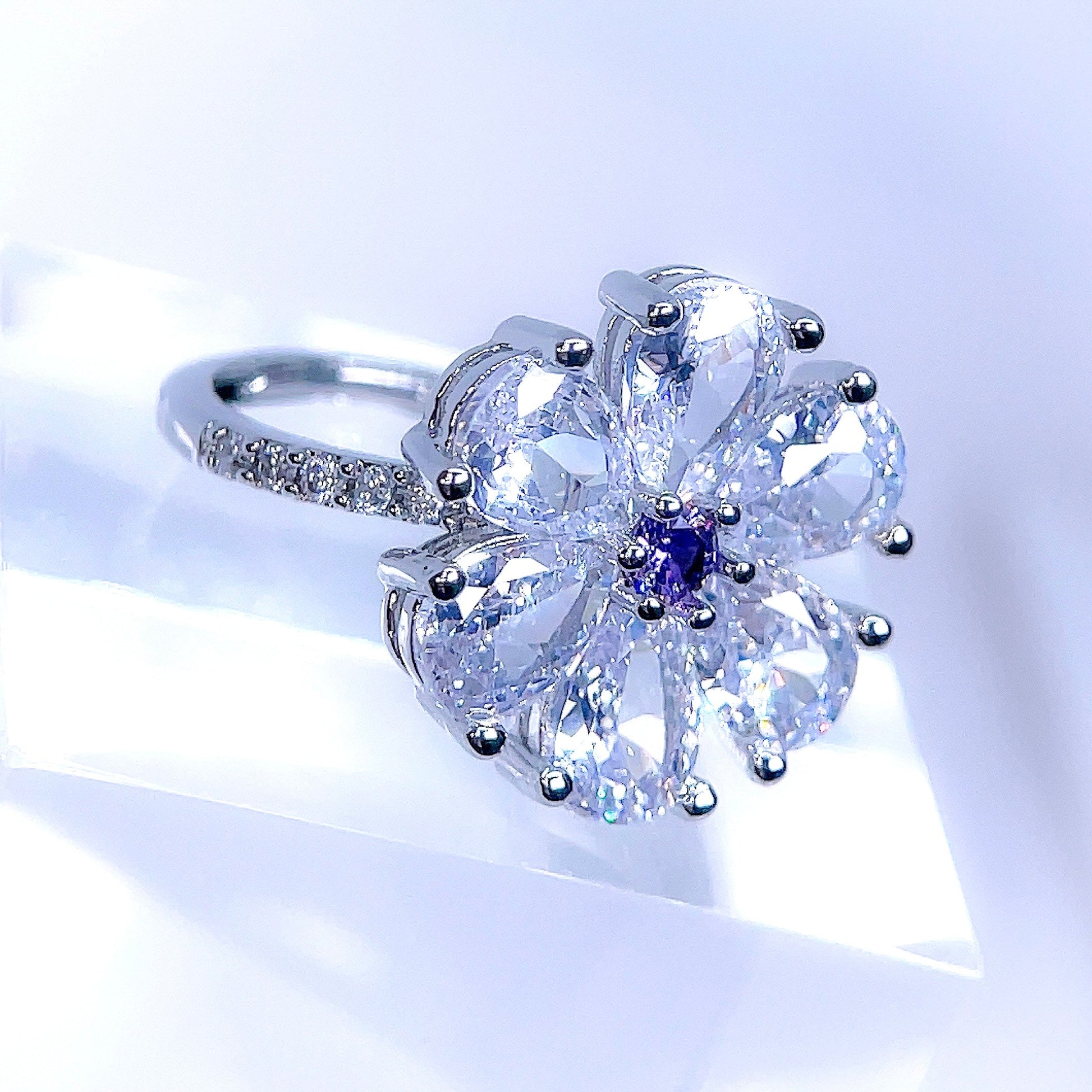 Aggiungi un tocco di brillantezza carina al tuo guardaroba quotidiano. Questo anello a fiore di cristallo è il pezzo di gioielleria perfetto da aggiungere alla tua estetica kawaii. Disponibile in rosa tormalina e cristallo viola