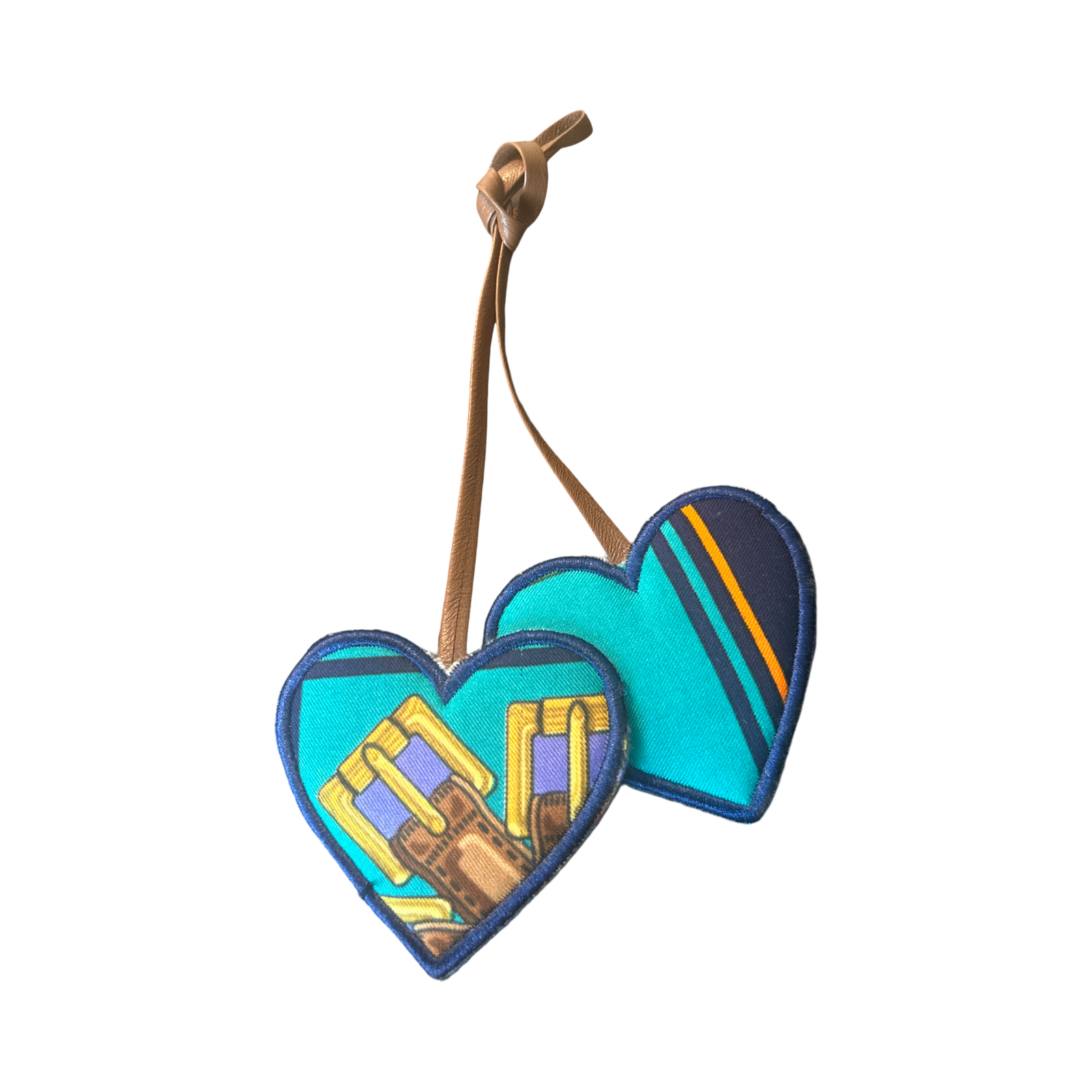 Reimagined from the world’s finest collection of vintage luxury scarves, our exclusive Double Heart Bag Charm is the must-have accessory of the season. Perfectly sized to give your cherished handbag a personalized pop of style.