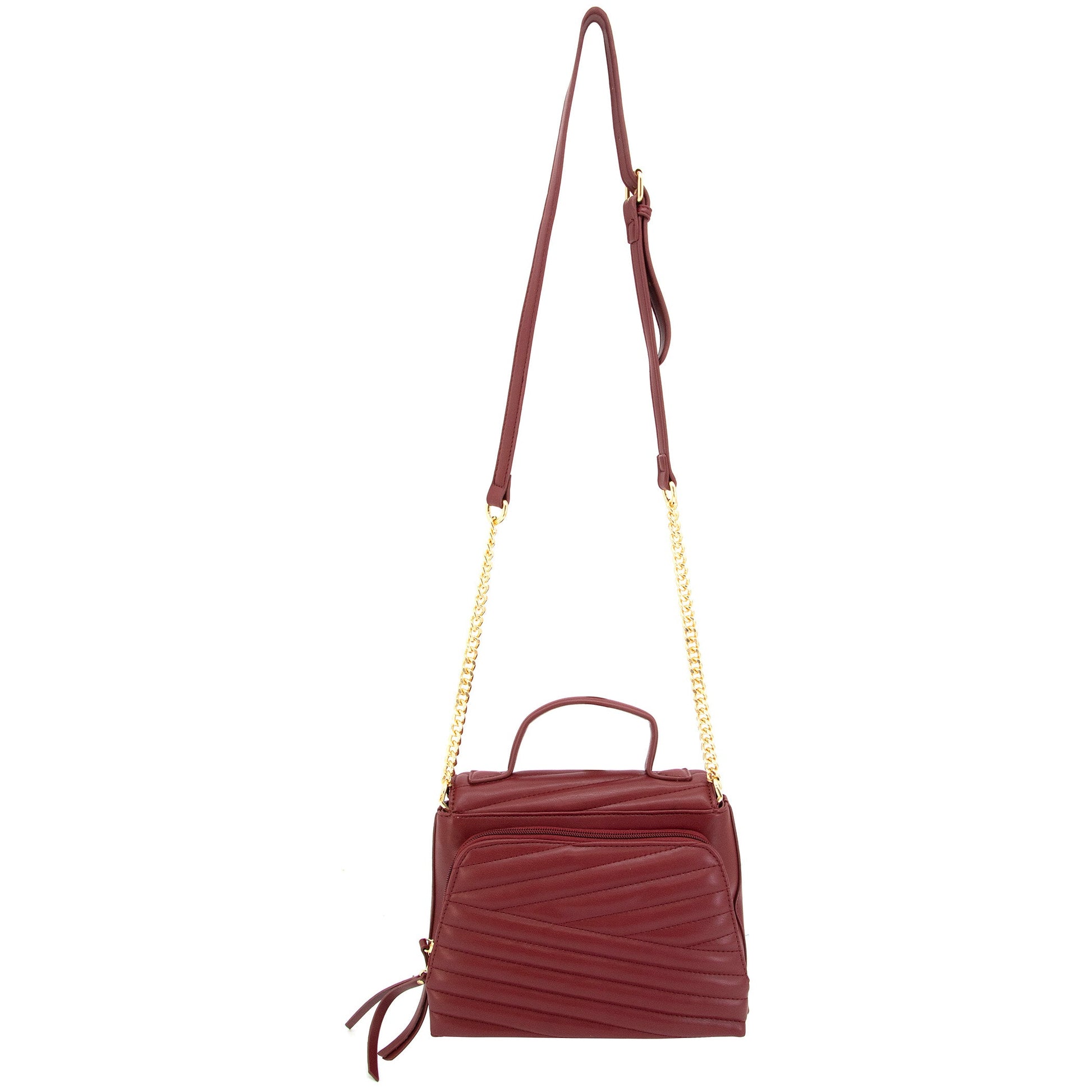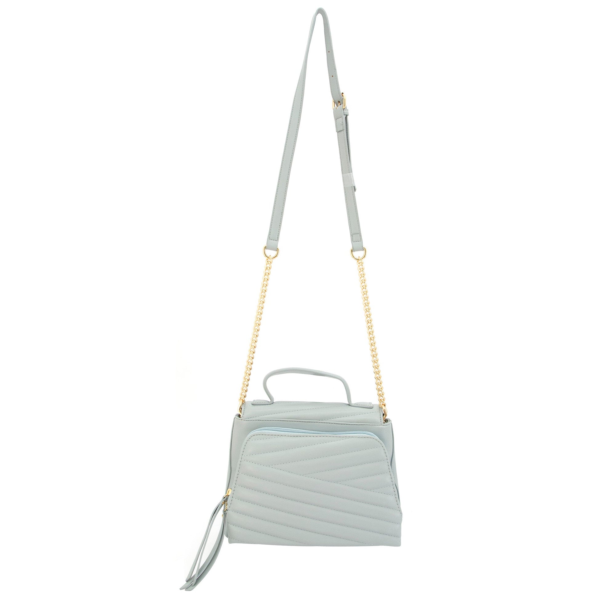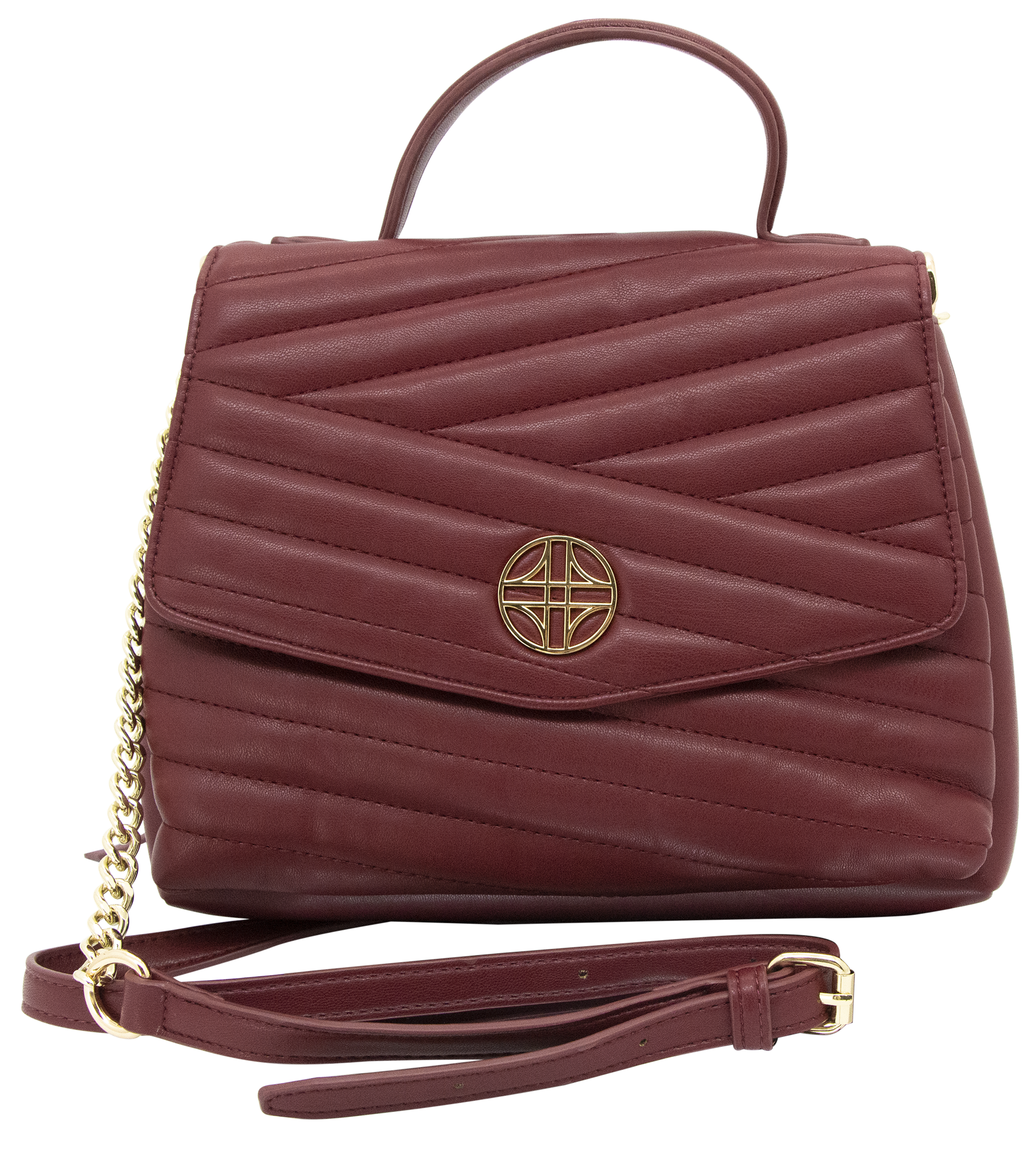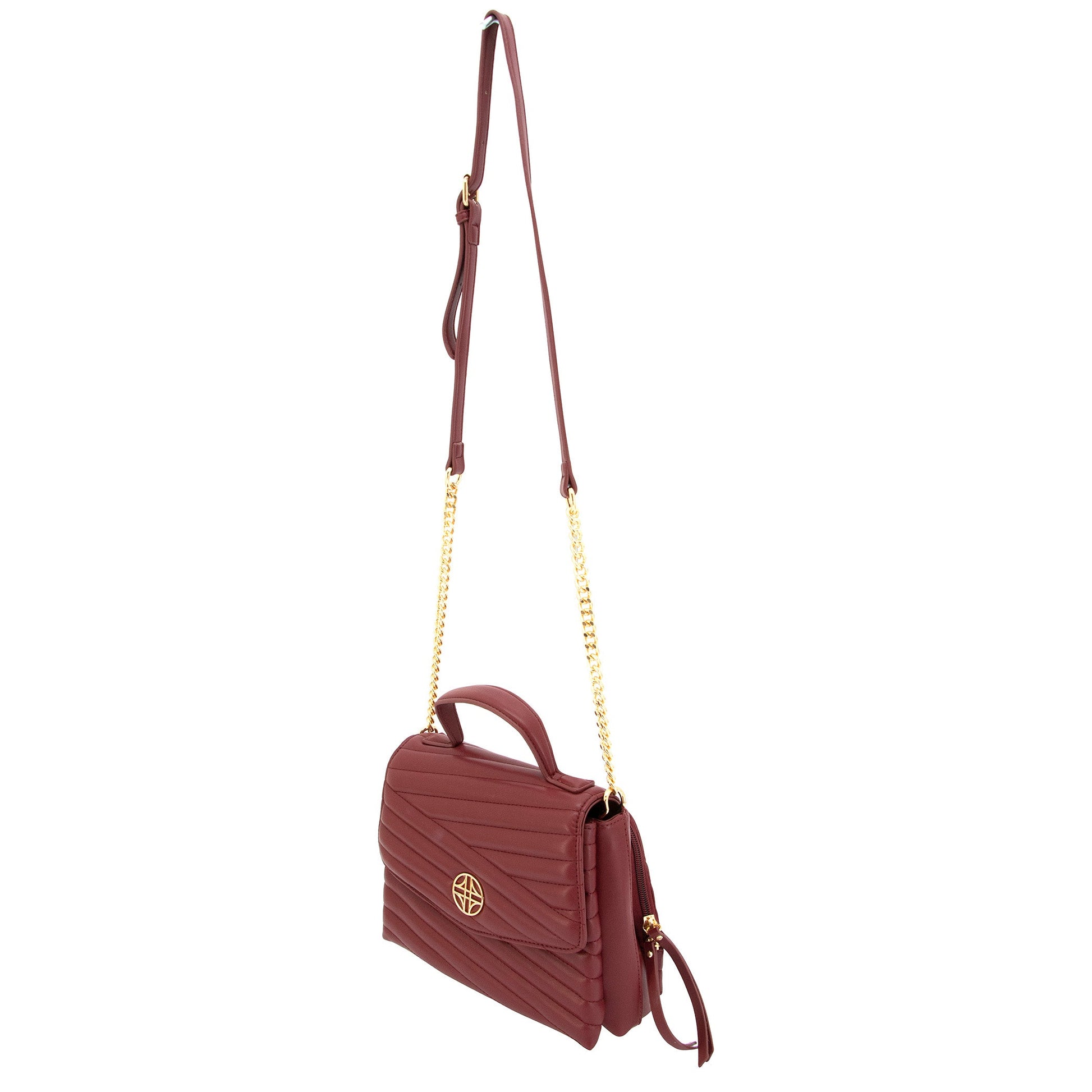 Venus è una borsa trapuntata in pelle vegana con una mezza patta frontale, chiusura nascosta con bottone magnetico e delicato dettaglio medaglione dorato. Presenta sia un manico in pelle vegana, una tracolla a catena curb, sia un manico superiore strutturato.