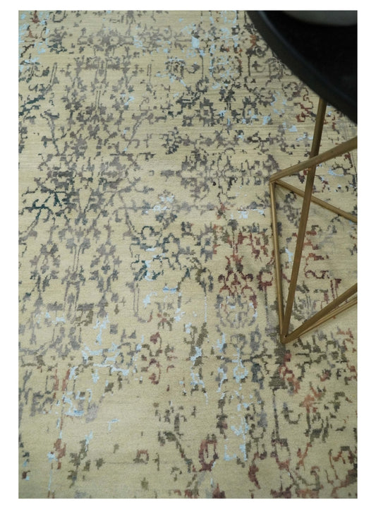 6x9 Fine Hand Knotted Beige and Rust Traditional Vintage Persian Style Antique Wool and Silk Rug | AGR2