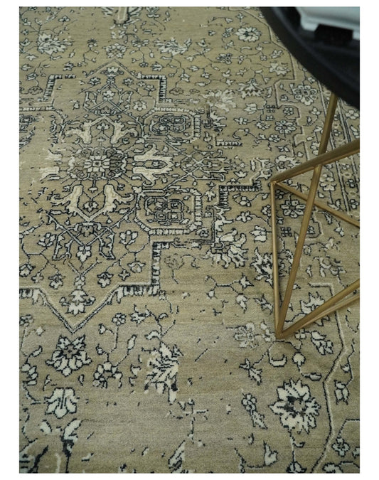 6x9 Fine Hand Knotted Beige and Black Traditional Vintage Persian Style Antique Wool Rug | AGR4