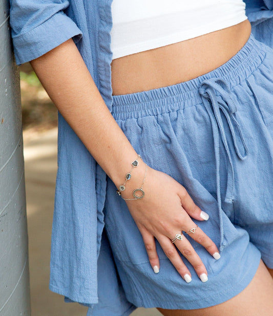 Labradoriet en zilveren armbandlijn