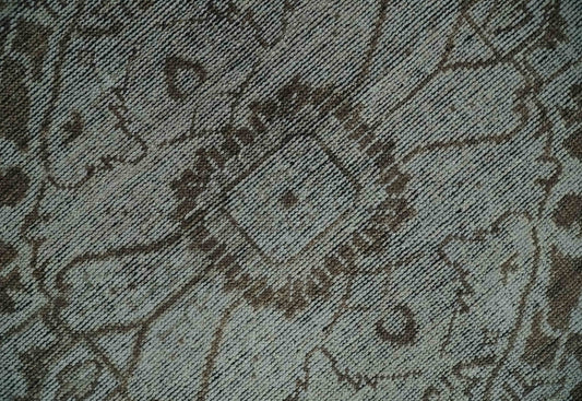 Antique Distress finish Silver, Teal and Brown Hand Knotted Traditional 8x10 wool Rug
