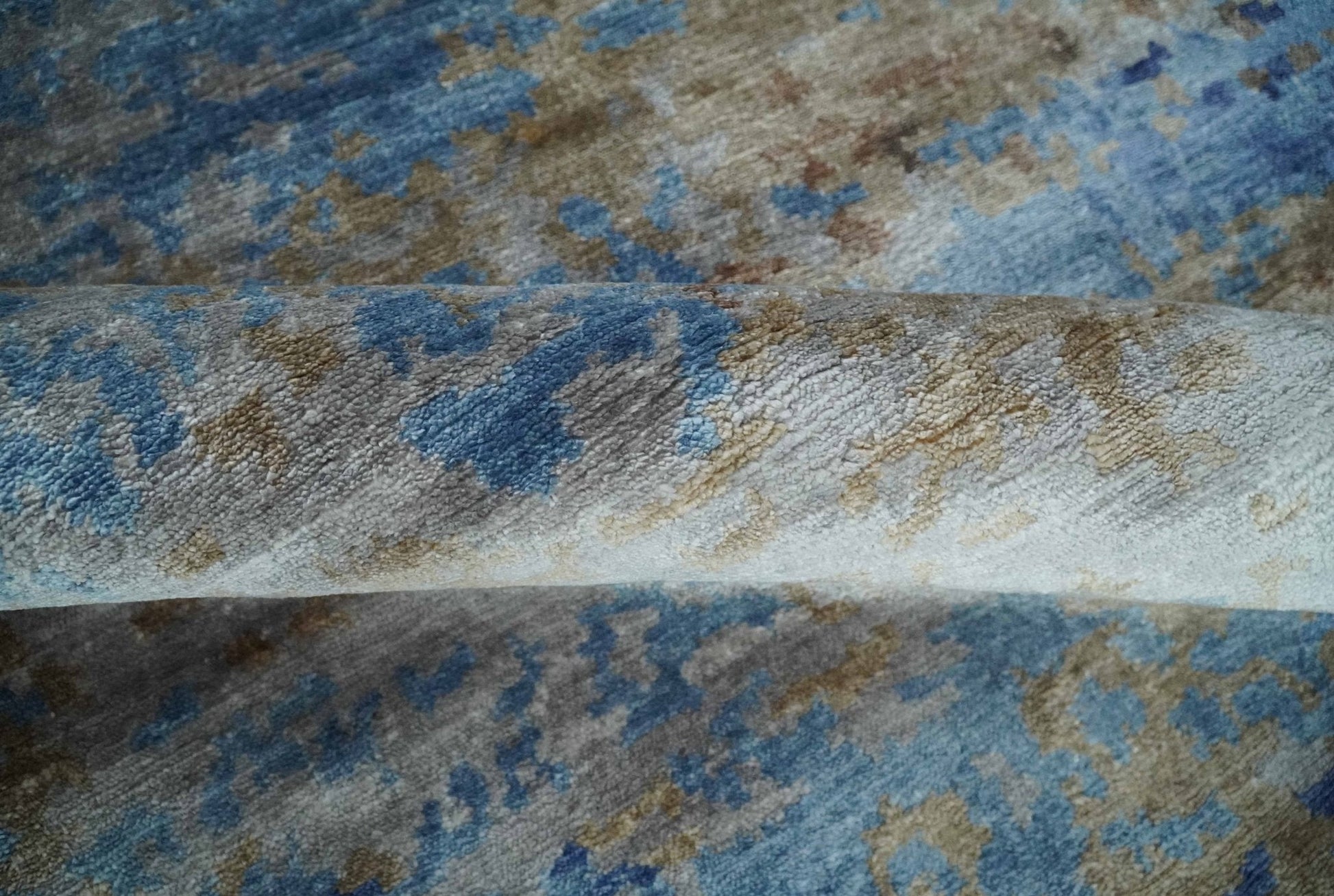 8x10 Blue, Beige and Brown Modern Abstract Hand Knotted wool and bamboo Silk Area Rug