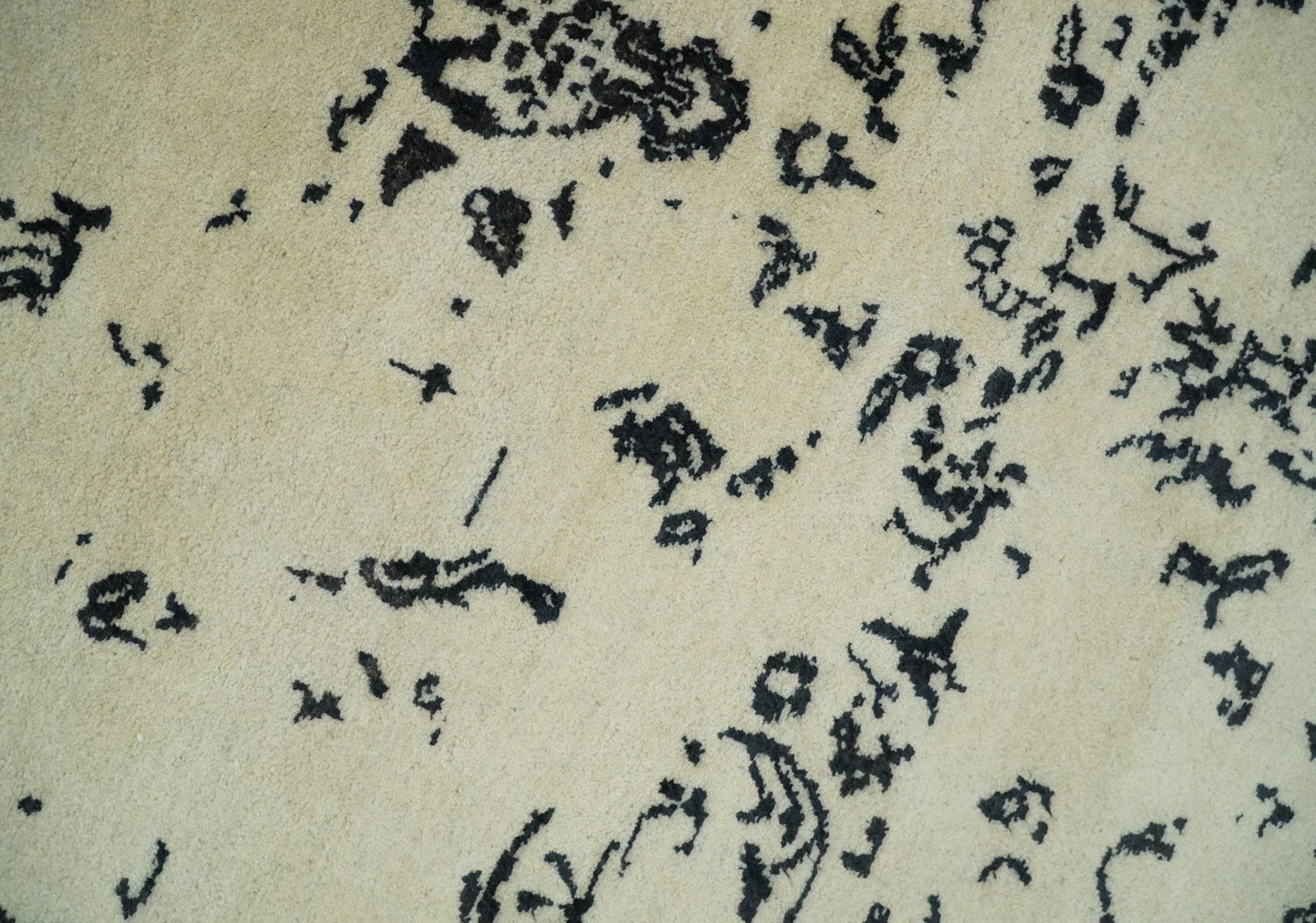 8x10 Fine Hand Knotted Beige and Black Traditional Vintage Persian Antique Wool Rug | AGR35