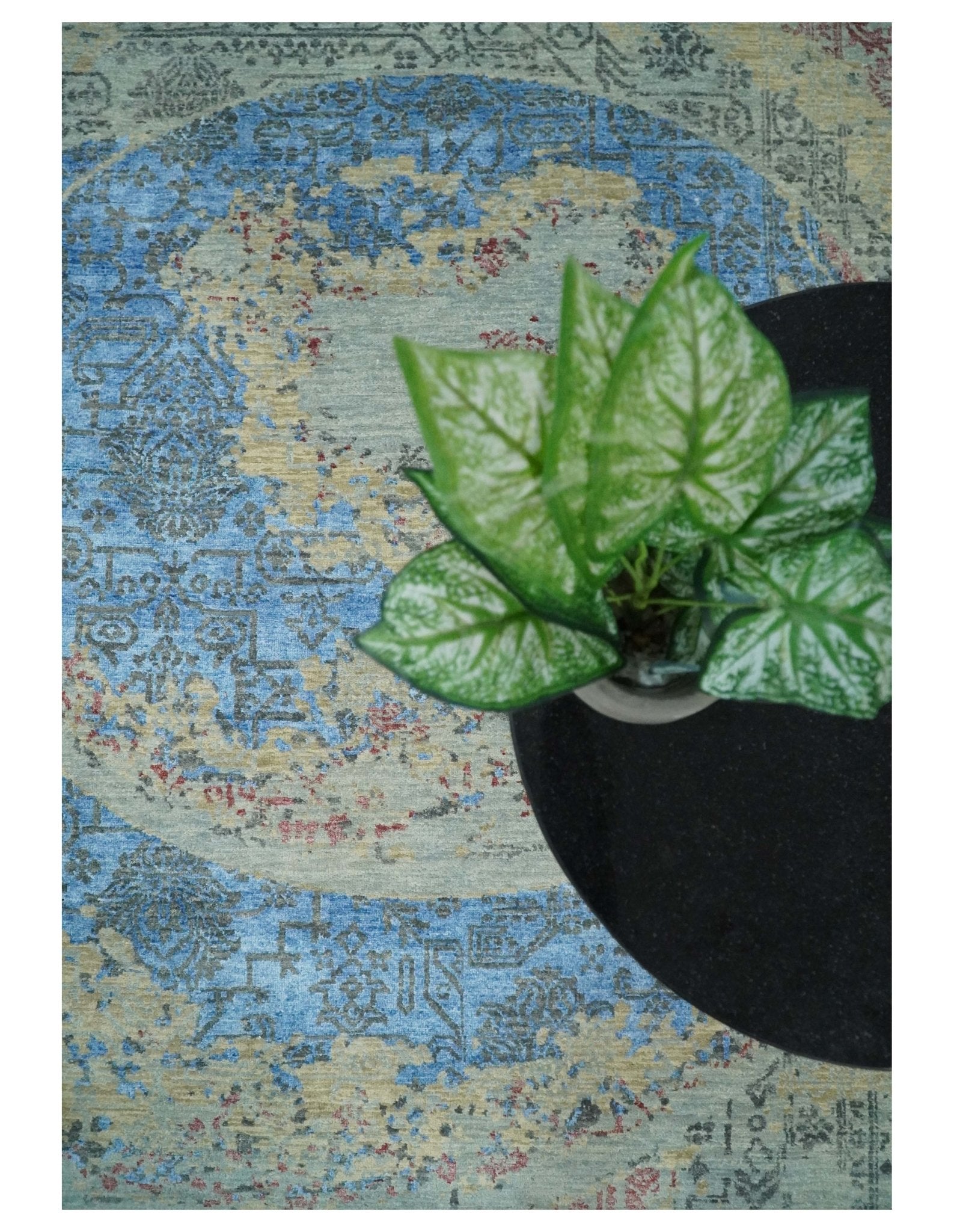 This specific rug is made in India, in the city of Bhadohi. Bhadohi is one of the biggest rug manufacturing cities. Carpet weaving in the region dates back to the 16th century during the reign of Akbar. The skilled artisans of Bhadohi have been carrying the tradition of rug-making for centuries.
