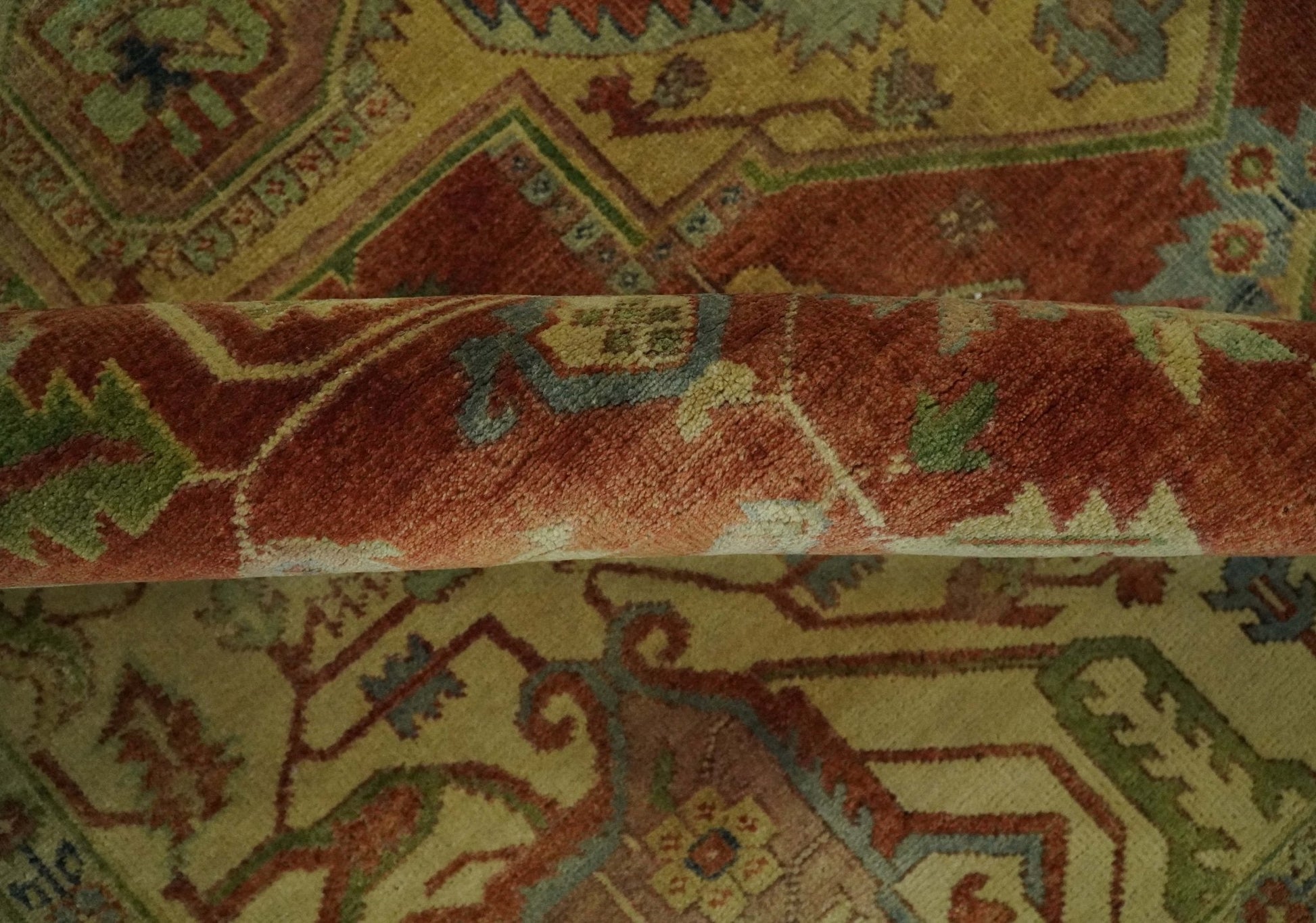 8x10 Gold, Rust and Charcoal Heriz Serapi Traditional Vintage Turkish Style Antique Look Hand Knotted Wool Area Rug | N361810