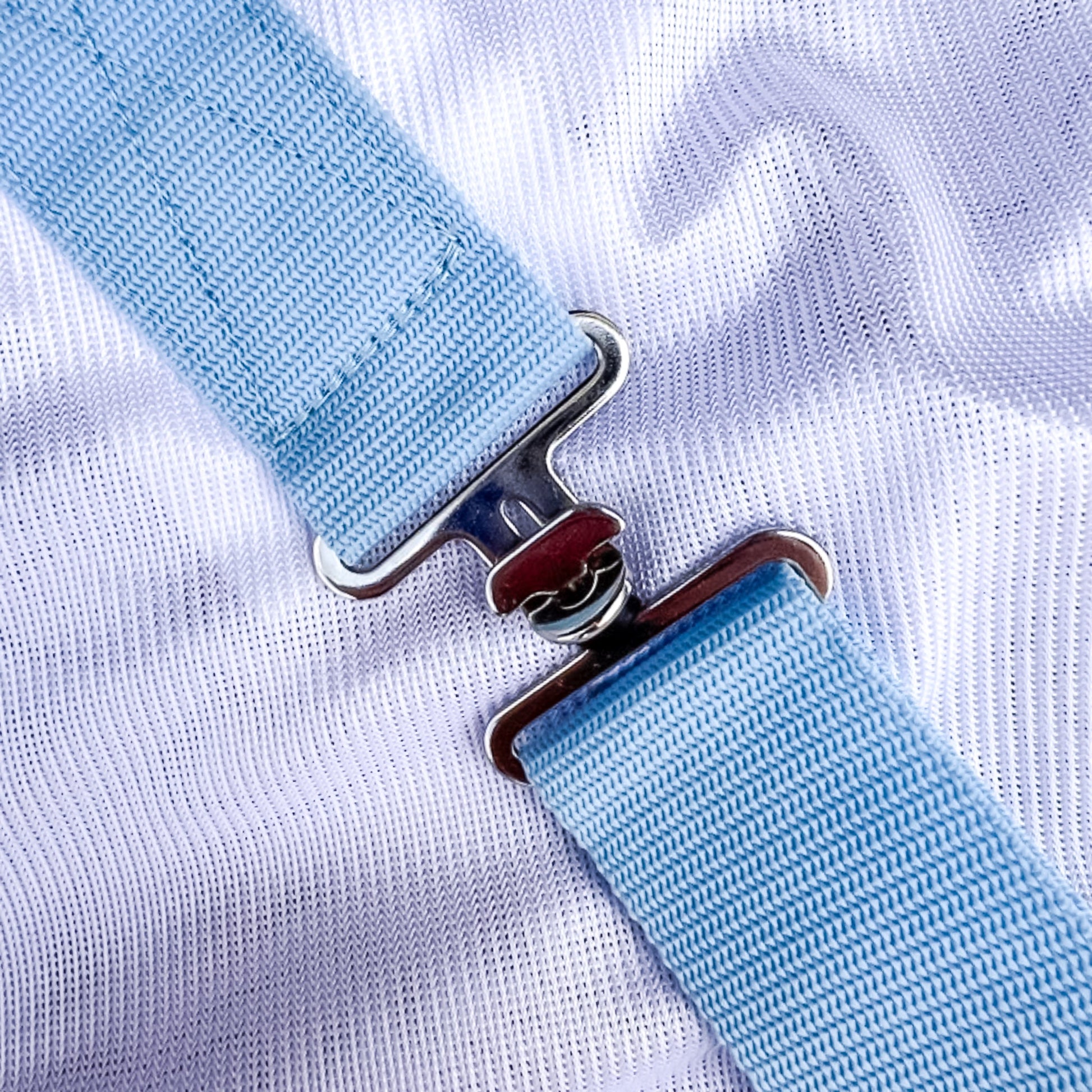 Protect your horse with confidence using the AJ Tack PestShield Lite Fly Sheet. Crafted from lightweight yet durable mesh, this fly sheet offers reliable pest protection and comfort during warmer months. The soft mesh construction keeps your horse cool and ventilated while effectively shielding against insects and harmful UV rays. Designed with practicality in mind, it features a double front buckle closure for a secure fit, a tail cord and flap for added coverage, cross surcingles for stability, and nylon lining at the shoulders to prevent rubbing. Ideal for everyday use in the pasture or stable, the PestShield Lite Fly Sheet ensures your horse stays comfortable and pest-free.