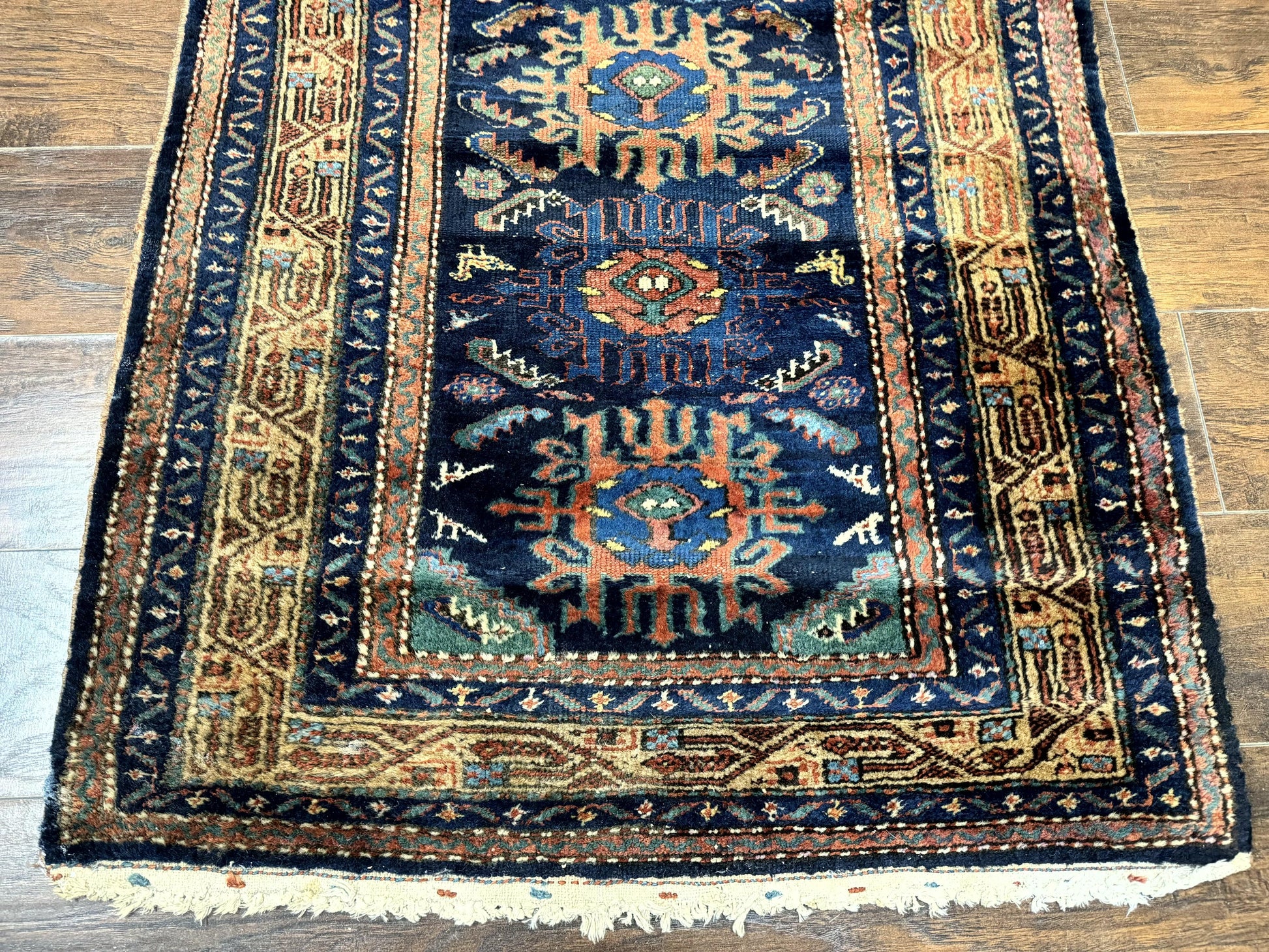 Antique Persian Sarab Runner 3x17, Blue Persian Runner Rug, Long Handmade Wool Carpet for Hallway, Rare, Tribal