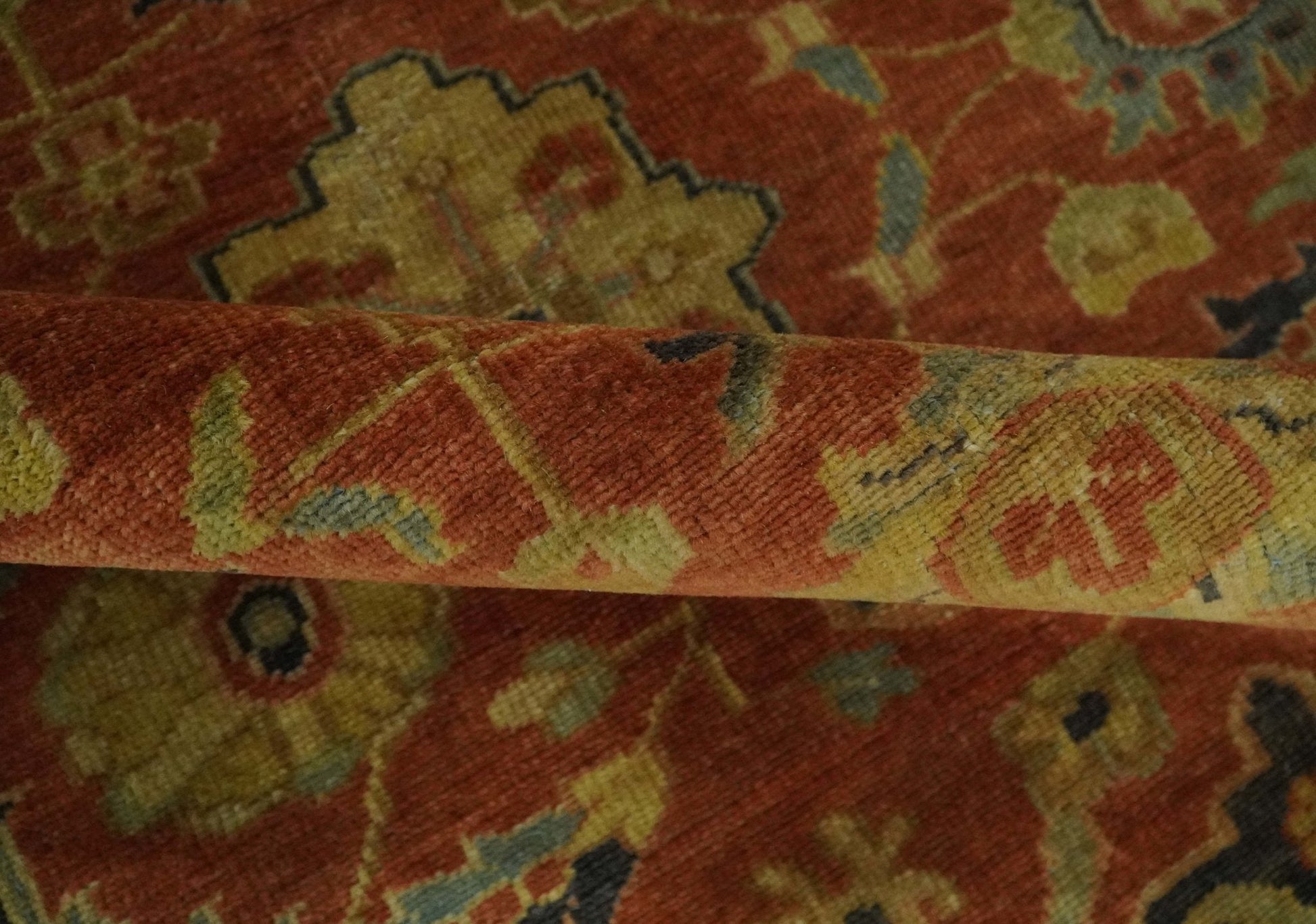 Antique Style 8x10 Rust, Black and Gold Hand Knotted Traditional Turkish Serapi Wool Area Rug