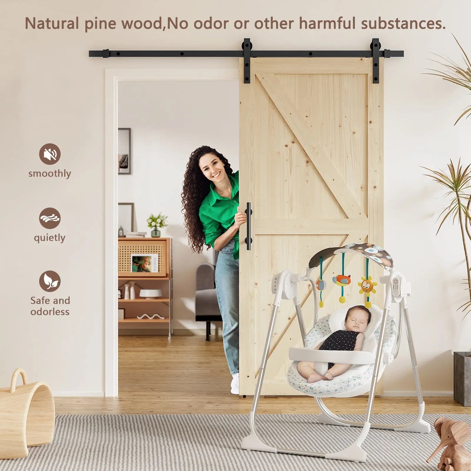 Deze schuifdeurbeslagset is gemaakt van 100% natuurlijk premium massief dennenhout, van nature rotbestendig en geurloos. Grotere weerstand tegen kromtrekken, draaien en splijten dan andere schuifdeuren. De intelligente tand-en-groef constructie zorgt voor een duurzame en solide beleving. Een heldere coating geeft een glans aan de natuurlijke houten schuifdeuren, perfect om de natuurlijke schoonheid van het hout te tonen.