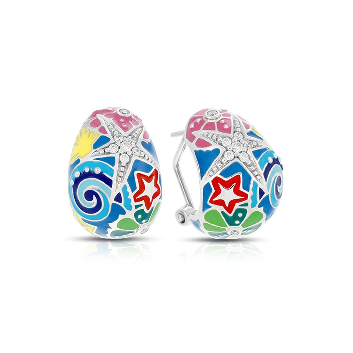 Koningsblauw: Met de hand geschilderd koningsblauw en meerkleurig Italiaans emaille met pavé-gezette stenen, gezet in rhodium-geplateerd, nikkelvrij, 925 sterling zilver.