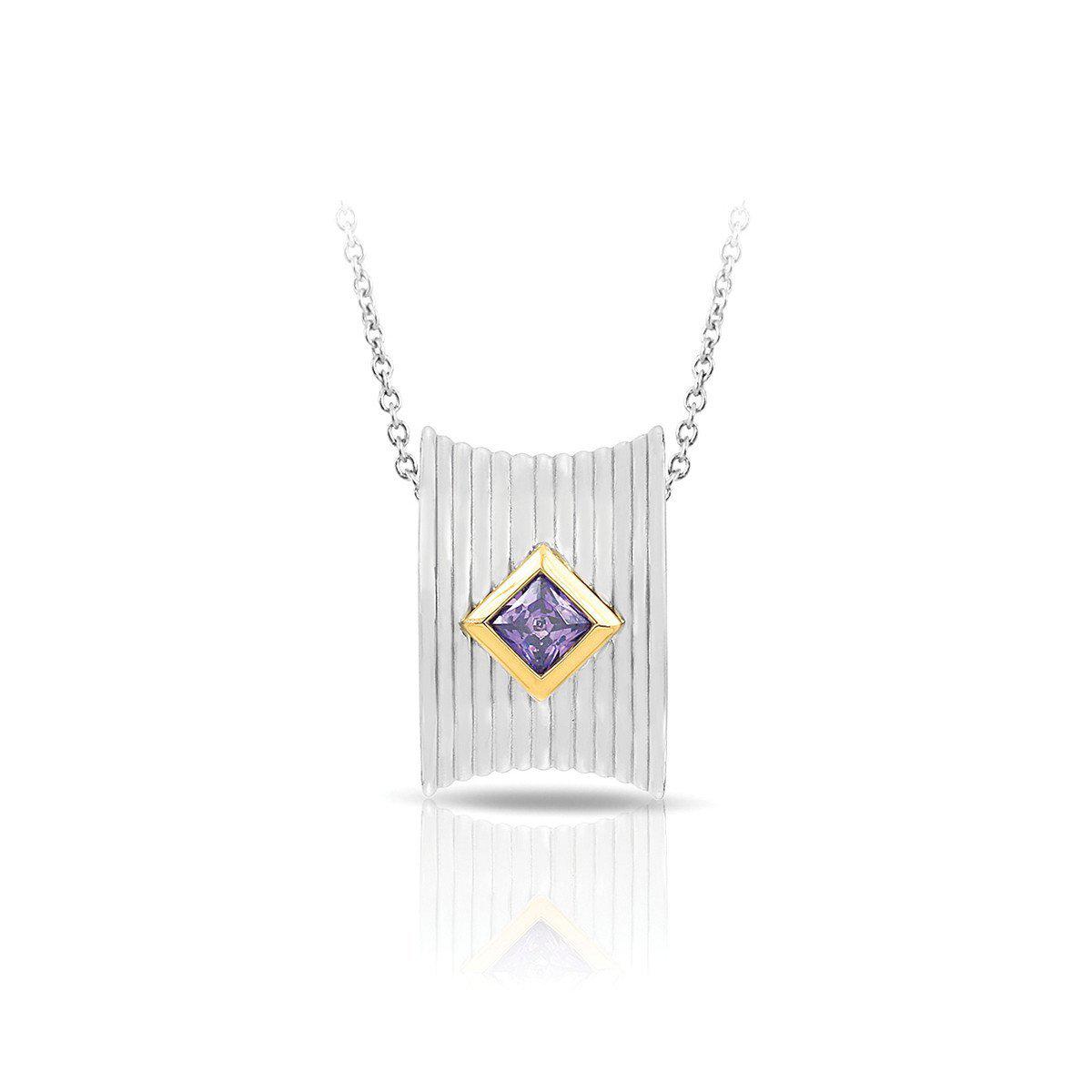 Sta sterk met de Valore Collectie van Belle Étoile! Italiaans voor "waarde", symboliseert de Valore Collectie de kracht van geest en persoonlijke moed. Met een prachtige prinsessenslijpsel amethist CZ gezet in 24-karaats geelgoud vermeil op een schild van sterling zilver, is de Valore Collectie de perfecte stijl voor de moderne en krachtige vrouw.