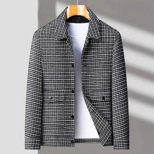 Houndstooth ullfrakk | Premium ullblandet stoff med elegant design