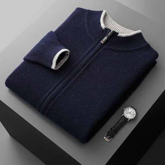 Premium ull zip-up jakke | Mykt lett stoff med to-farget design