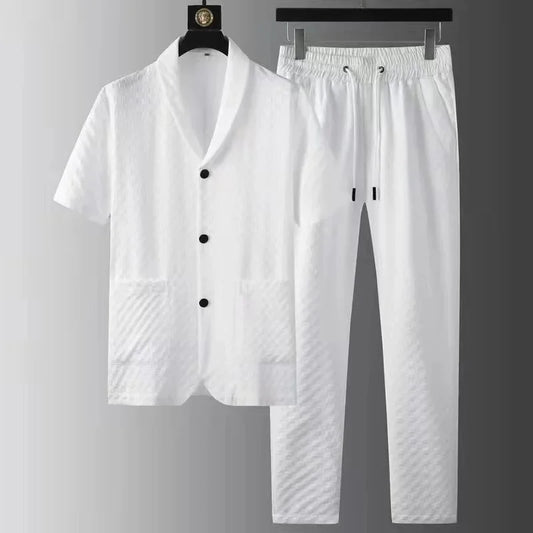 Todelt sett for menn | Strukturert poloskjorte og bukser med avslappet passform