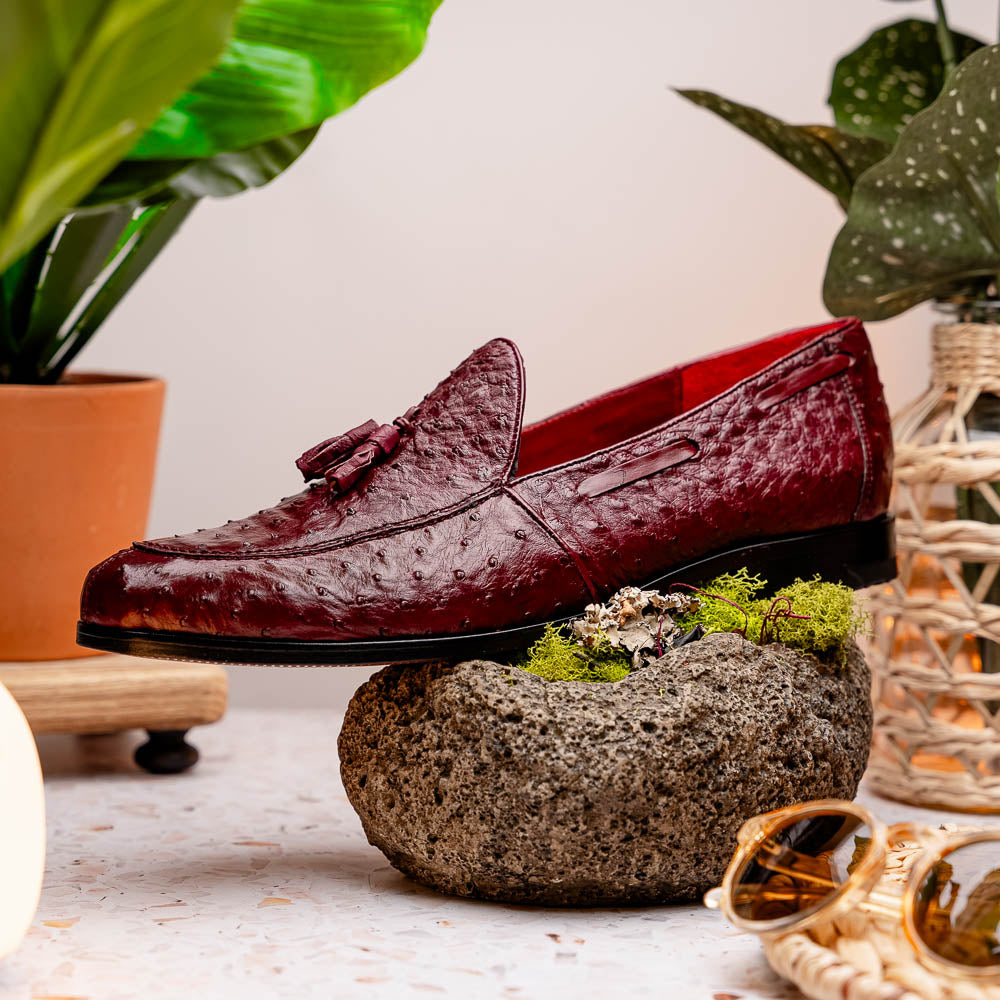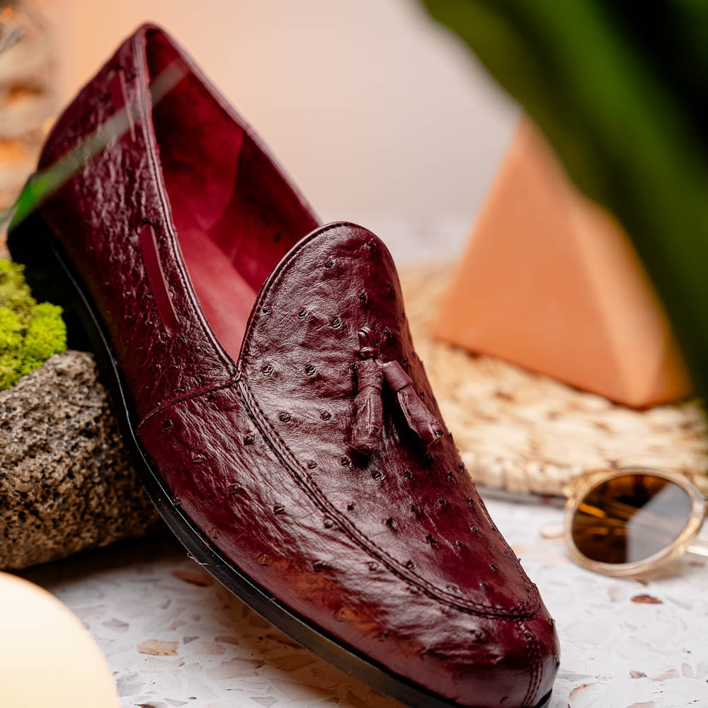 The AUBIERE is our classic fully genuine ostrich tassel loafers that have made their way as a best seller. They feature a beautiful polished hand finish, easy slip-on application, and a full leather outsole. Dress these up with your favorite jeans, slacks, or shorts for a sophisticated look.