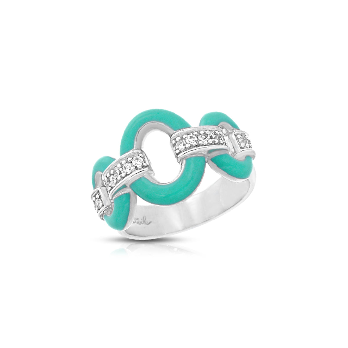 Aqua: Håndmalt aqua italiensk emalje med pave-innfattede steiner satt i rhodiumbelagt, nikkelfri, 925 sterlingsølv.